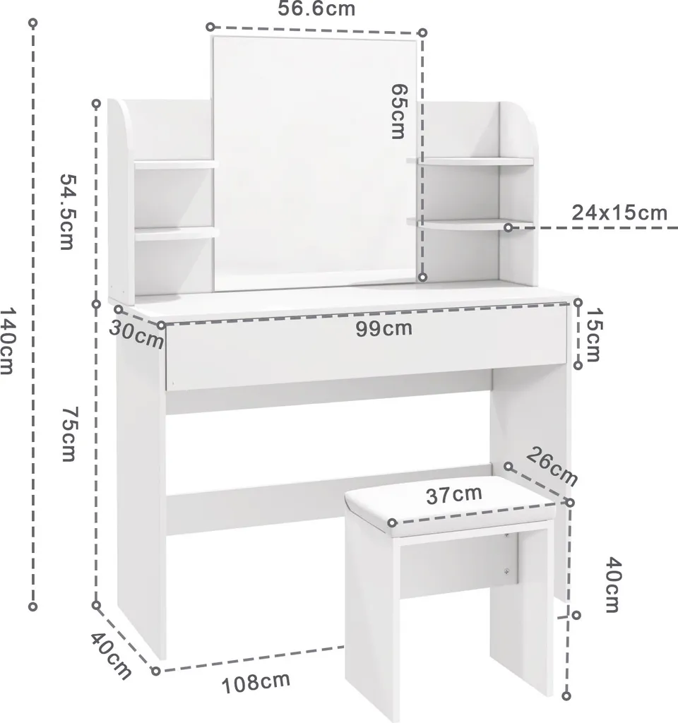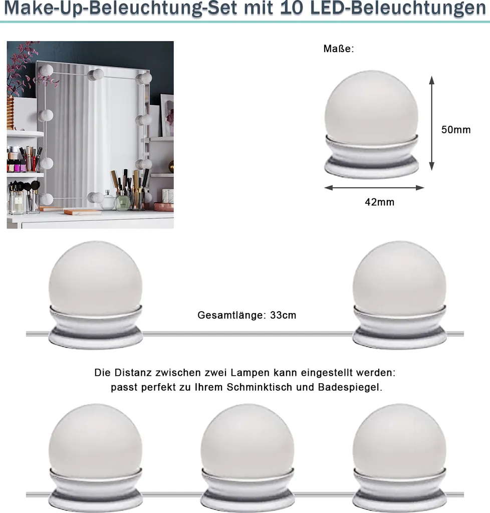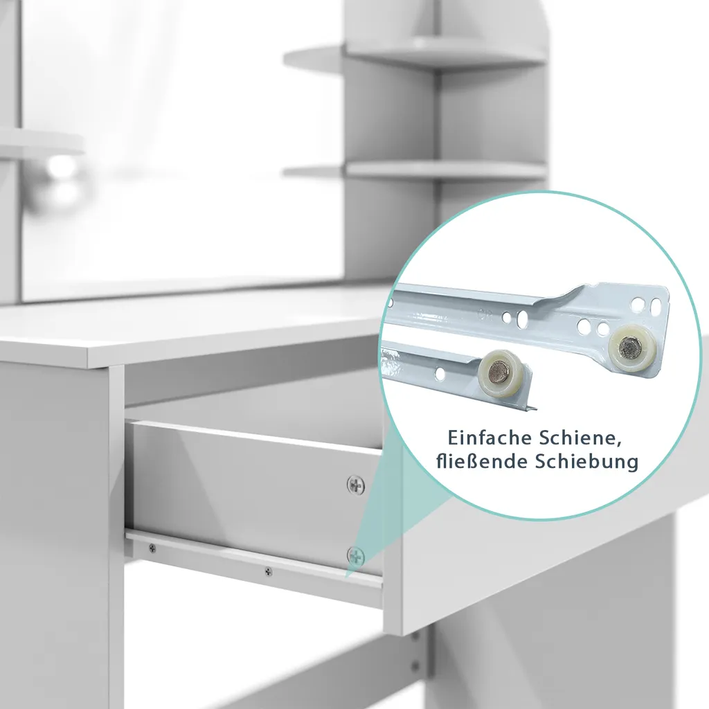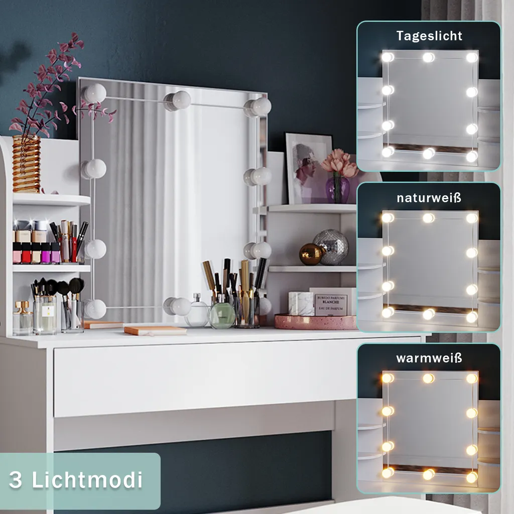 Schminktisch Weiß Mit Hocker Und Beleuchtung Frisiertisch Mit Spiegel, Mit Schublade, 1080x400x1400mm