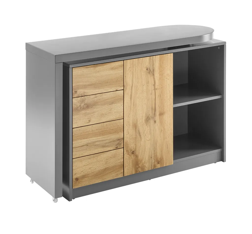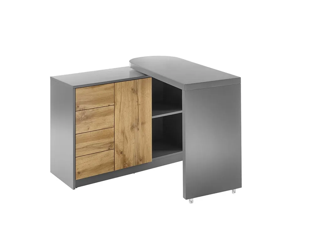 Schreibtisch Mantua Grau Lack Und Eiche Laptoptisch Mit Stauraum Schwenkbar Ausziehbar 108 – 166 Cm