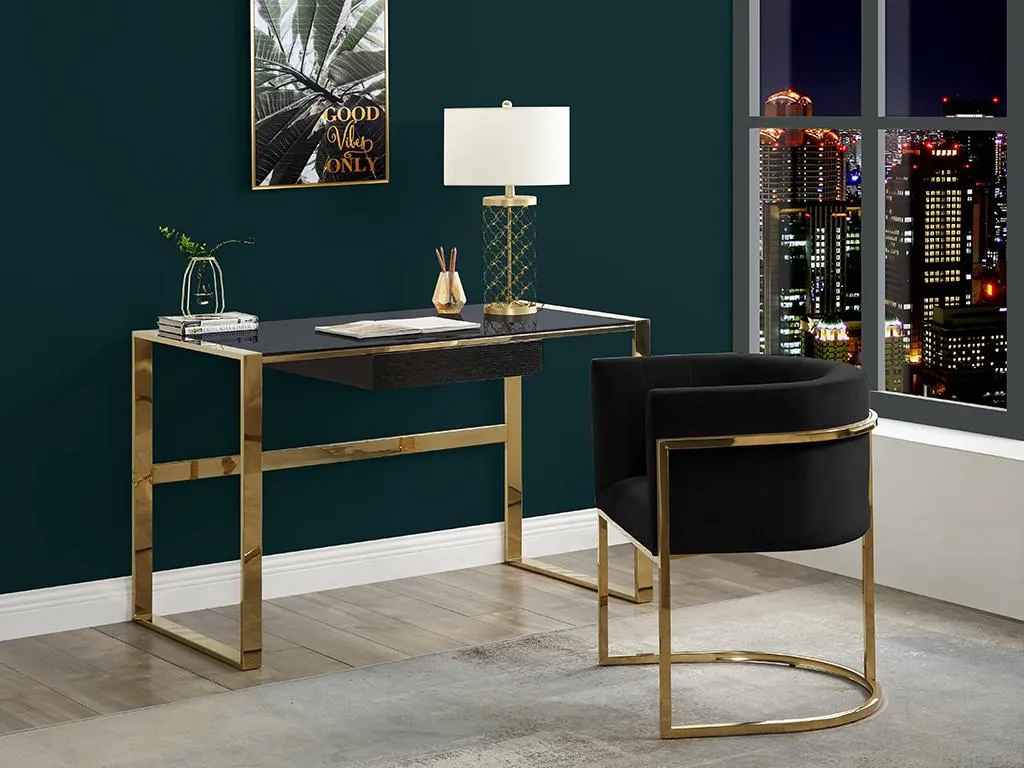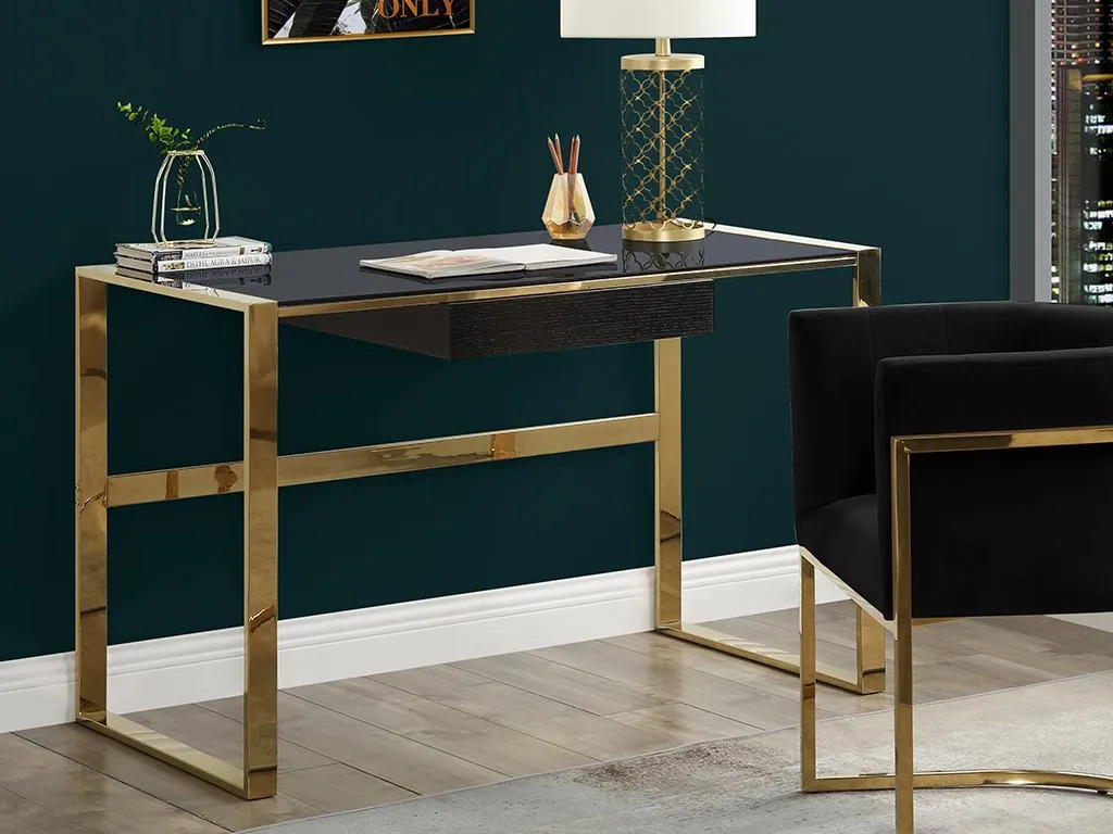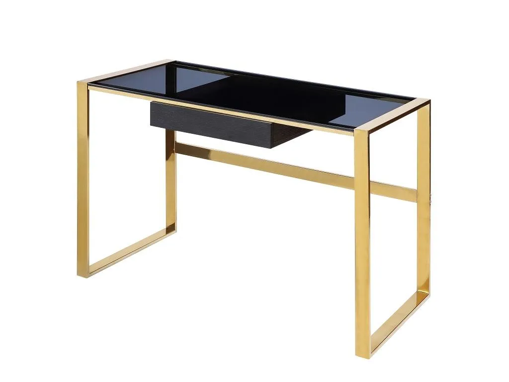 Schreibtisch Mit 1 Schublade – Glas & Stahl – Schwarz & Goldfarben – SALI