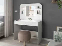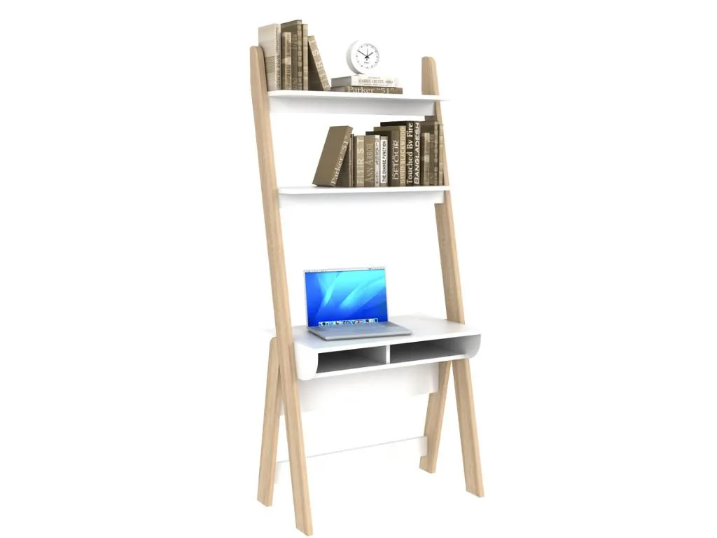 Schreibtisch Mit Regal – Weiß & Eichefarben – ESKALI