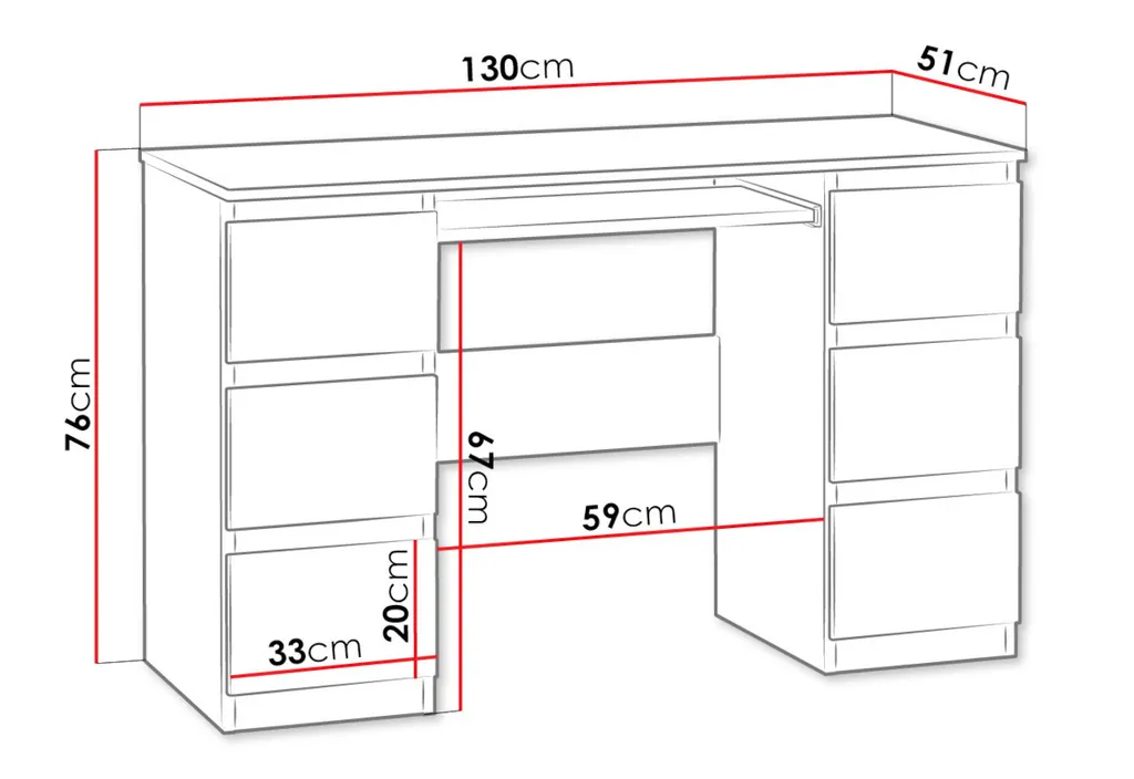 Schreibtisch PUDA, Computertisch, Gametisch, PC Tisch Schreibtisch , 130x76x51, Weiß/Weiß Glanz