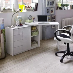 Schreibtisch PUDA, Computertisch, Gametisch, PC Tisch Schreibtisch , 130x76x51, Weiß/Weiß Glanz