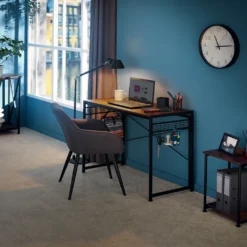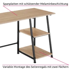 Tectake Computer-Schreibtisch Hershey 122x61x120cm – Industrial Holz Hell, Eiche Sonoma