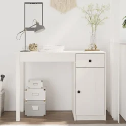 Vipack Hochbett Mit Liegefläche 140 X 200 Cm Und Großer Schreibtischplatte, Ausf. Weiß Lackiert