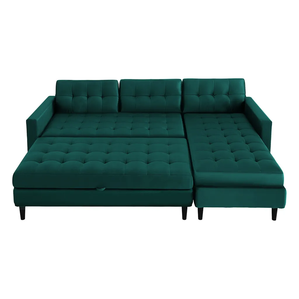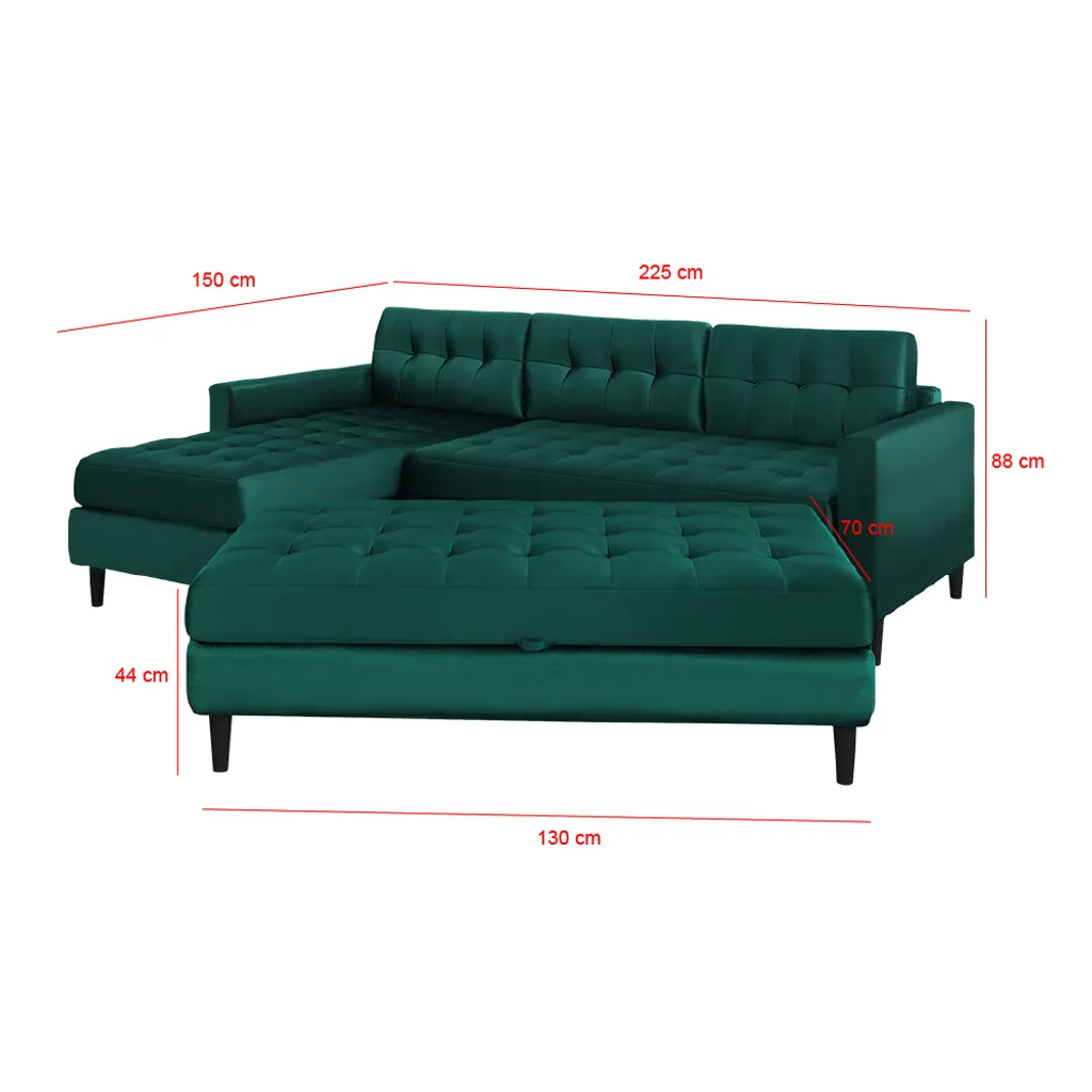 Selsey Ecksofa KOPENHAGA – Moderne Schlafcouch Mit Hocker, Veloursbezug In Dunkelgrün, Holzbeinen, Ottomane Beidseitig Montierbar, 225 Cm Breit