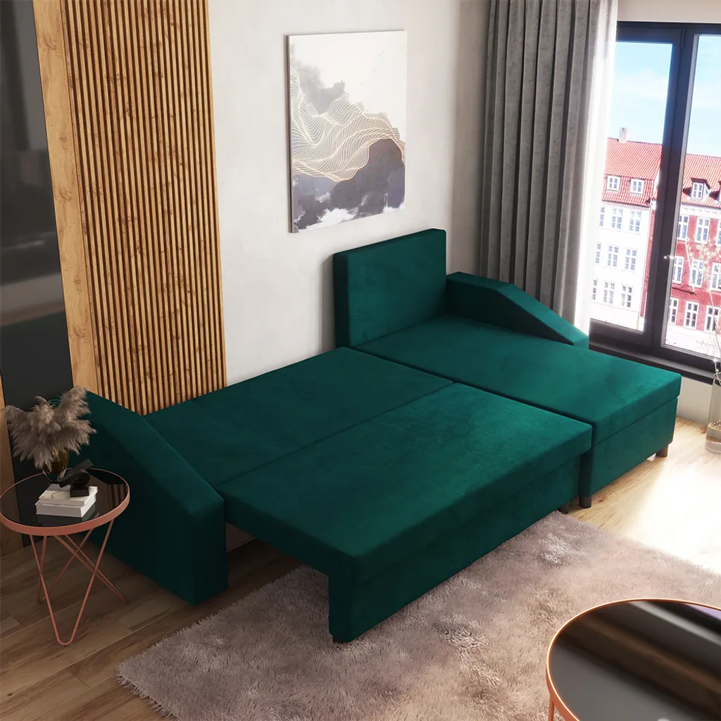 Selsey Ecksofa MORABOD – Eckcouch Mit Schlaffunktion, Wasserabweisendem Veloursbezug In Dunkelgrün Und Bettkasten, 230 Cm Breit