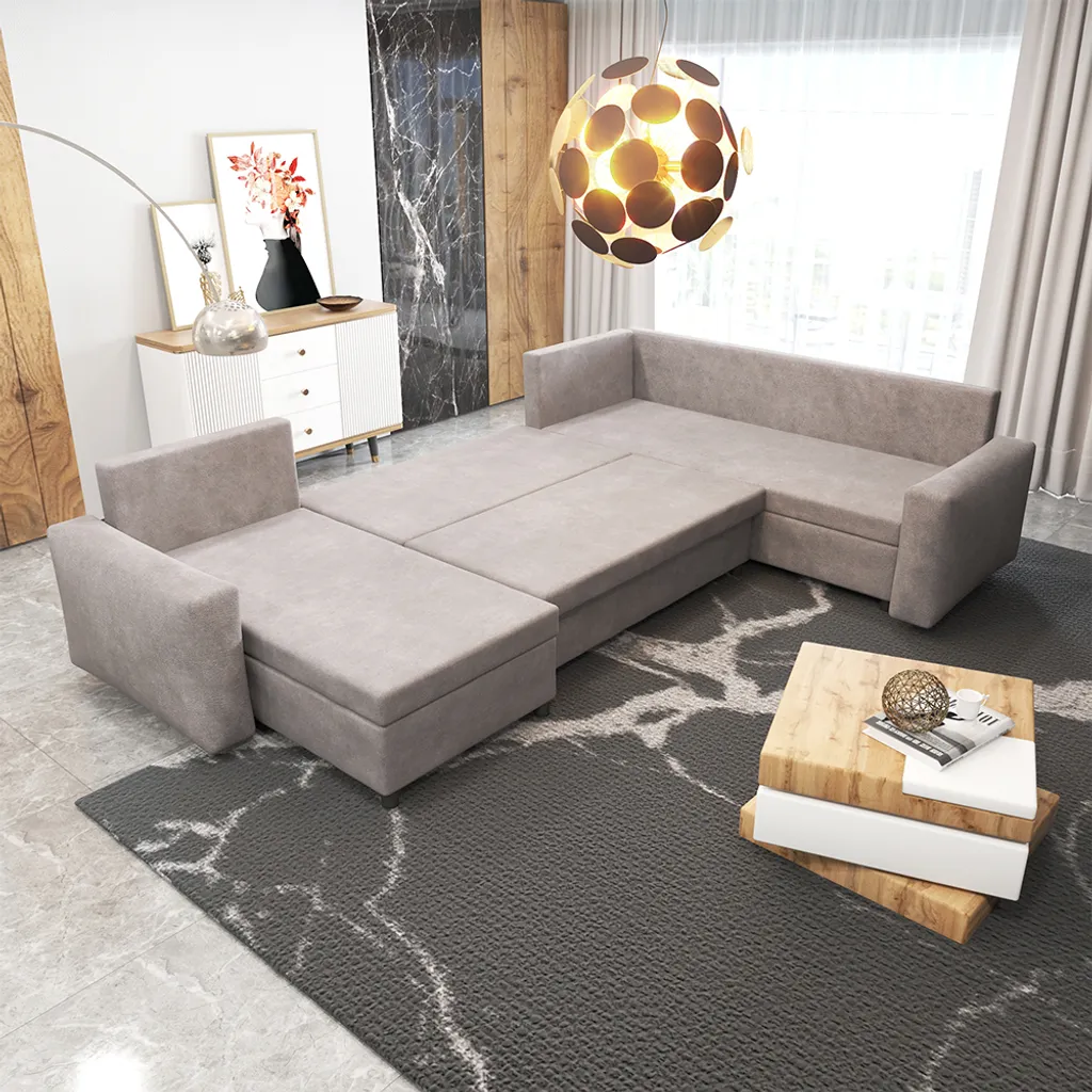 Selsey Wohnlandschaft FOXGLOVE – Schlafsofa In U-Form Cappuccino, Mit Ottomane Und Bettkasten, 285 Cm Breit