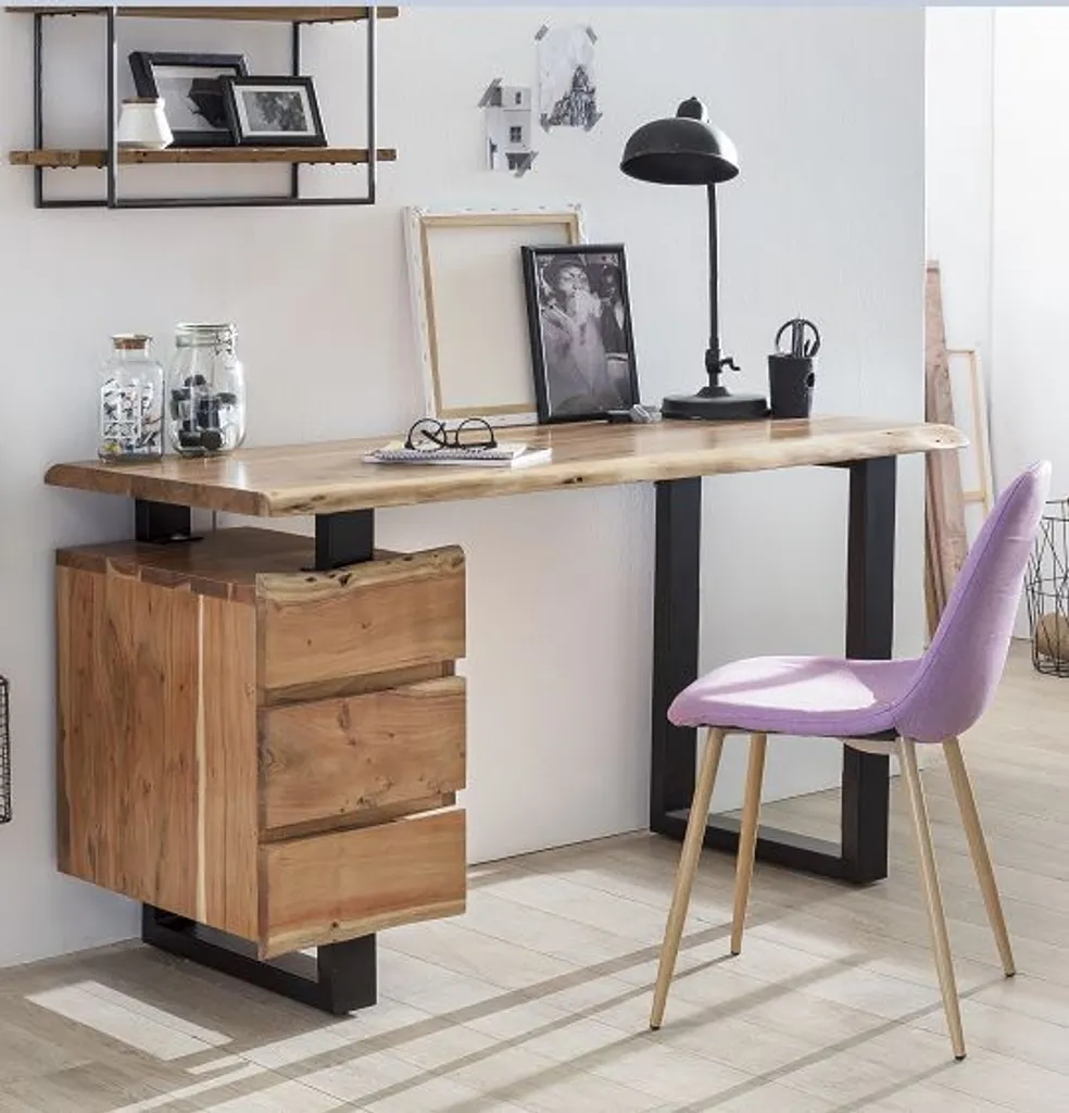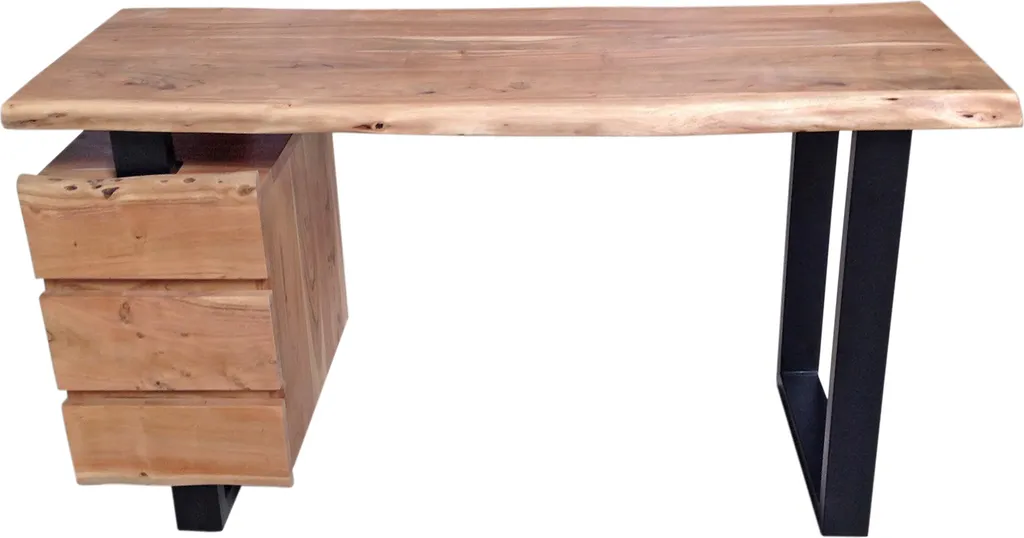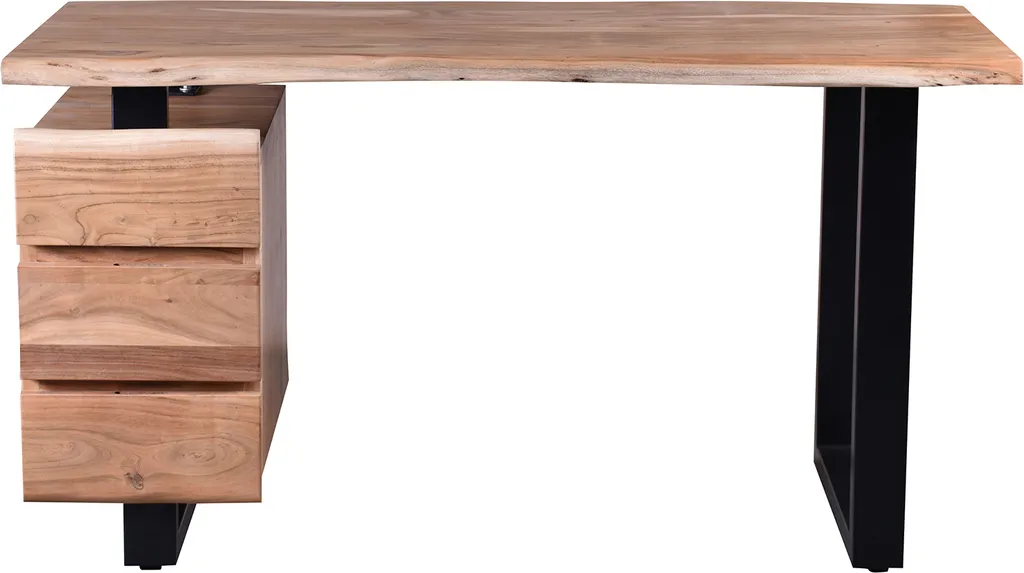 SIT Möbel Baumkante Schreibtisch | 3 Schubladen | 38 Mm Platte Akazie-Holz Natur | Beine Metall Schwarz | B 147 X T 62 X H 80 Cm | 13007-01 | Serie ALBERA