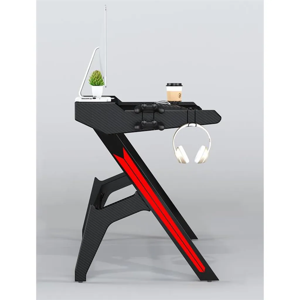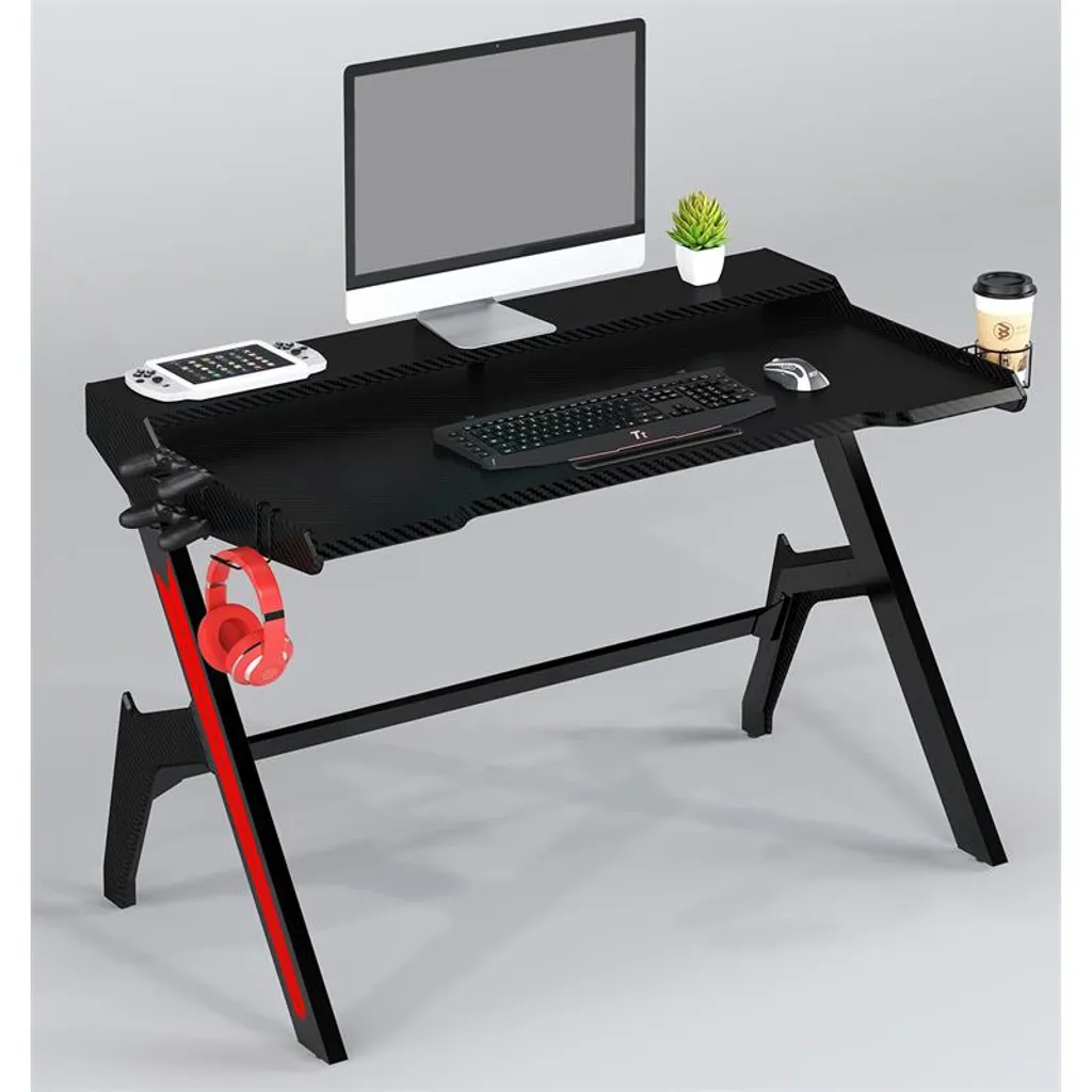 SixBros. Gaming Computertisch Gamer Tisch Racing Carbon Optik Schwarz GT-007/8190