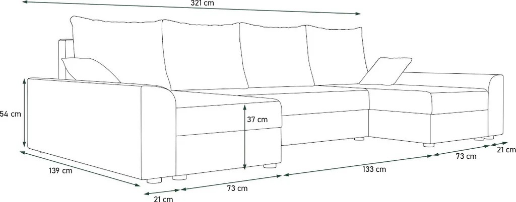 Sofa Mit Schlaffunktion In U-Form VIVIANA, Couch, Schlaffunktion , Wohnlandschaft Wohnzimmer, 321x80x139 Sawana 14/sawana 13