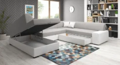 GRAINGOLD Ecksofa Ardi U, Eckcouch Mit Schlaffunktion Und Bettkasten, Eckcouch In U-Form – Beige