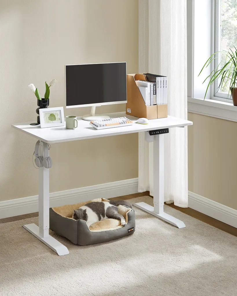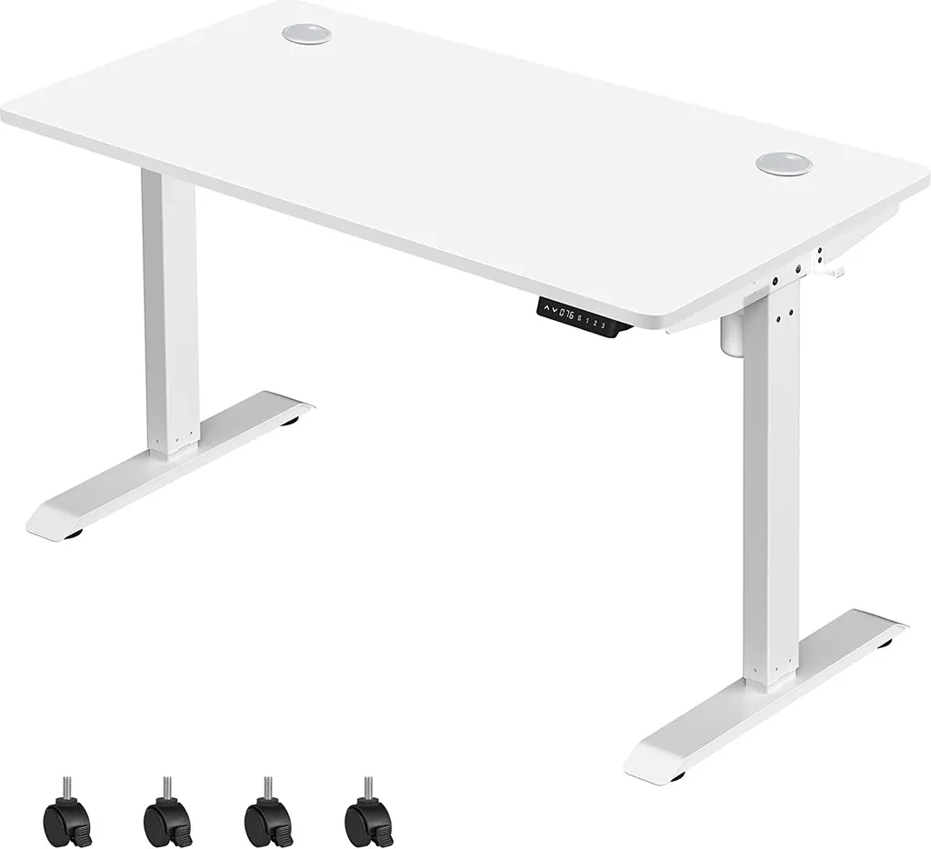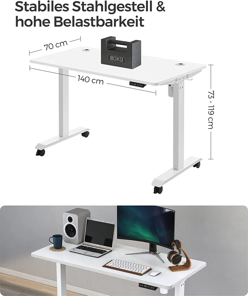 SONGMICS Höhenverstellbarer Schreibtisch Elektrisch, 70 X 140 Cm Tischoberfläche, Stufenlos Verstellbar, Memory-Funktion Mit 3 Höhen, Auffahrschutz, Weiß LSD102W01