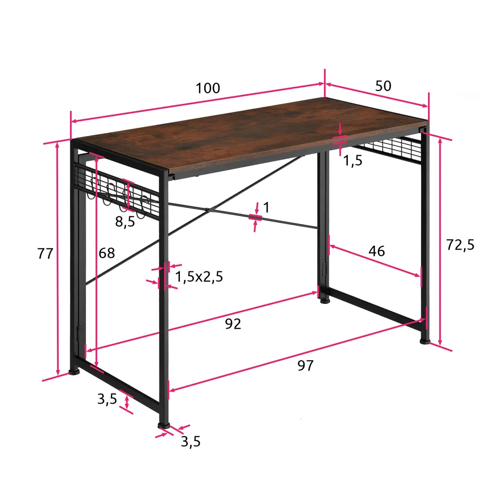 Tectake Schreibtisch Paterson Klappbar 102x51x77cm – Industrial Dunkelbraun