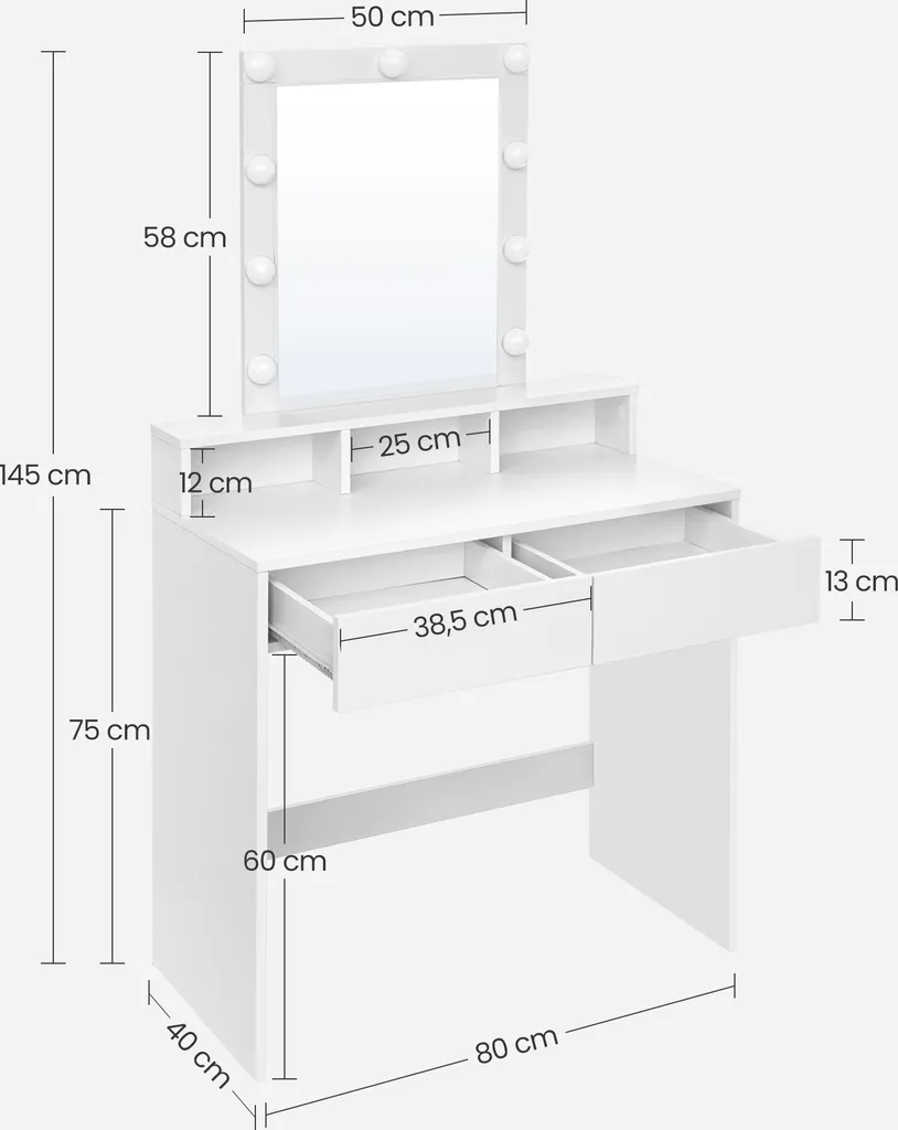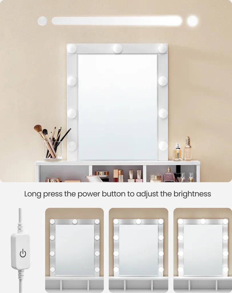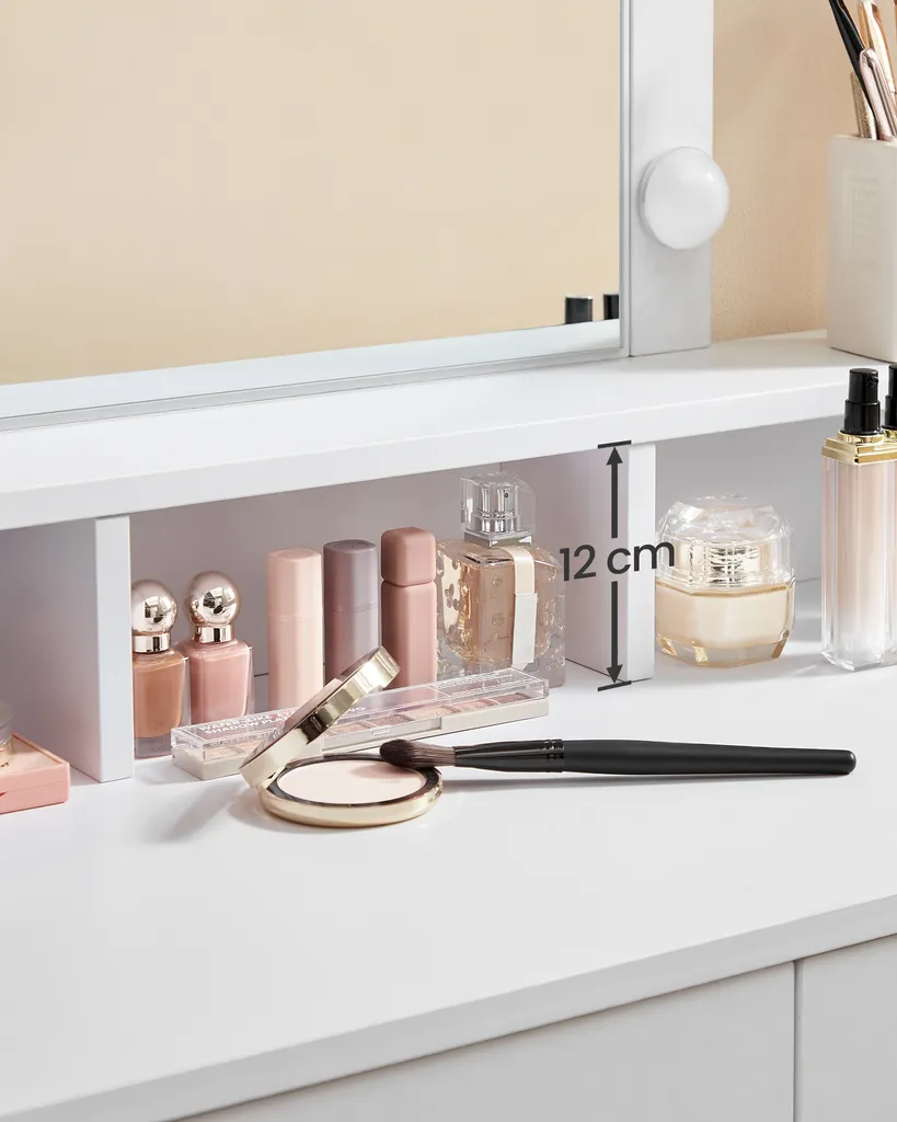 VASAGLE Schminktisch Mit Spiegel Und 2 Schubladen Frisiertisch Kosmetiktisch Mit 3 Offenen Fächern Frisierkommode Modern Weiß