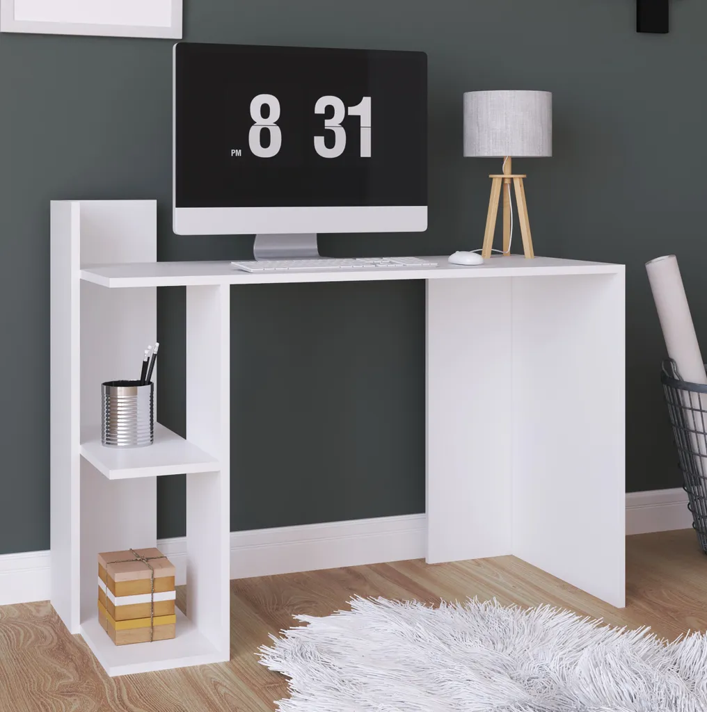 VCM Holz Schreibtisch Computertisch Arbeitstisch Bürotisch Ablage Sinkas Weiß