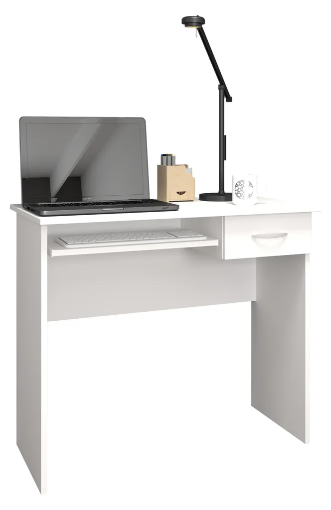 VCM Holz Schreibtisch Computertisch Tastaturauszug Schublade Bürotisch Arusa Weiß