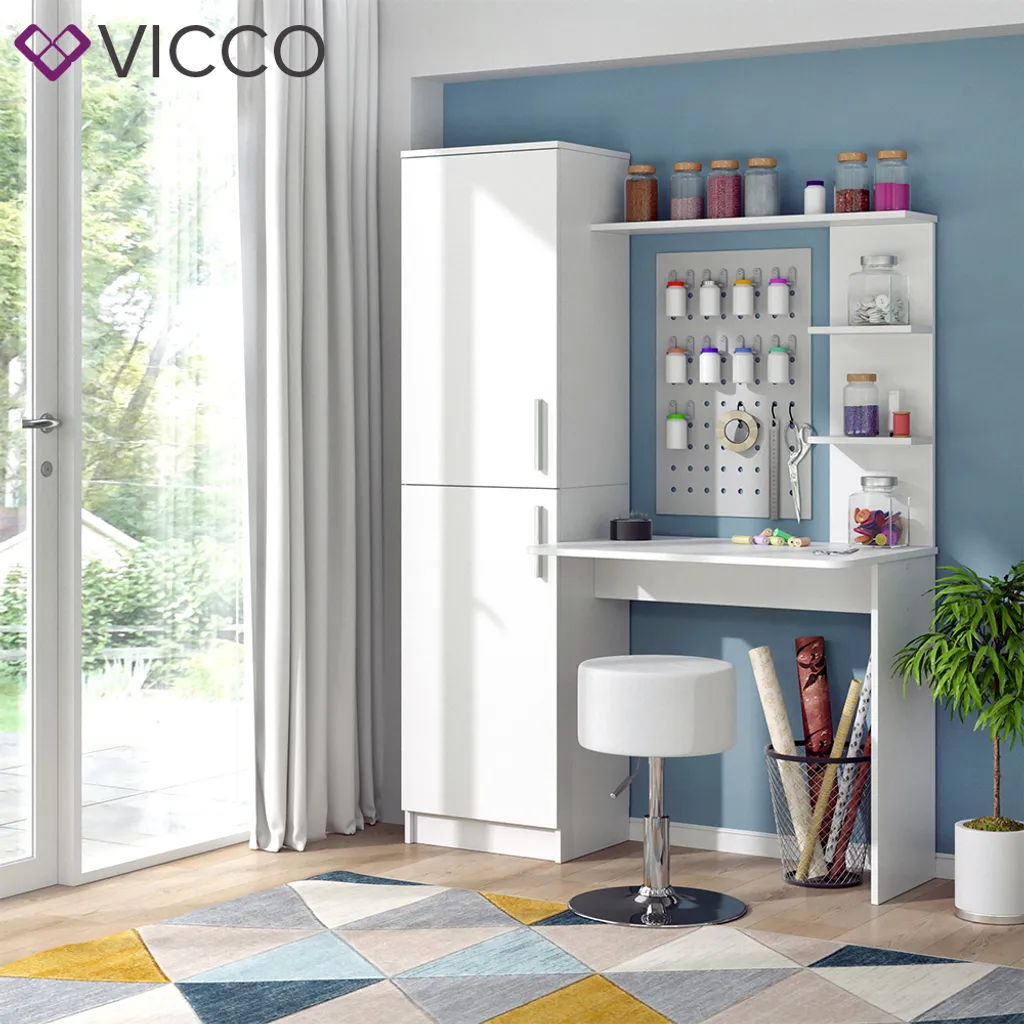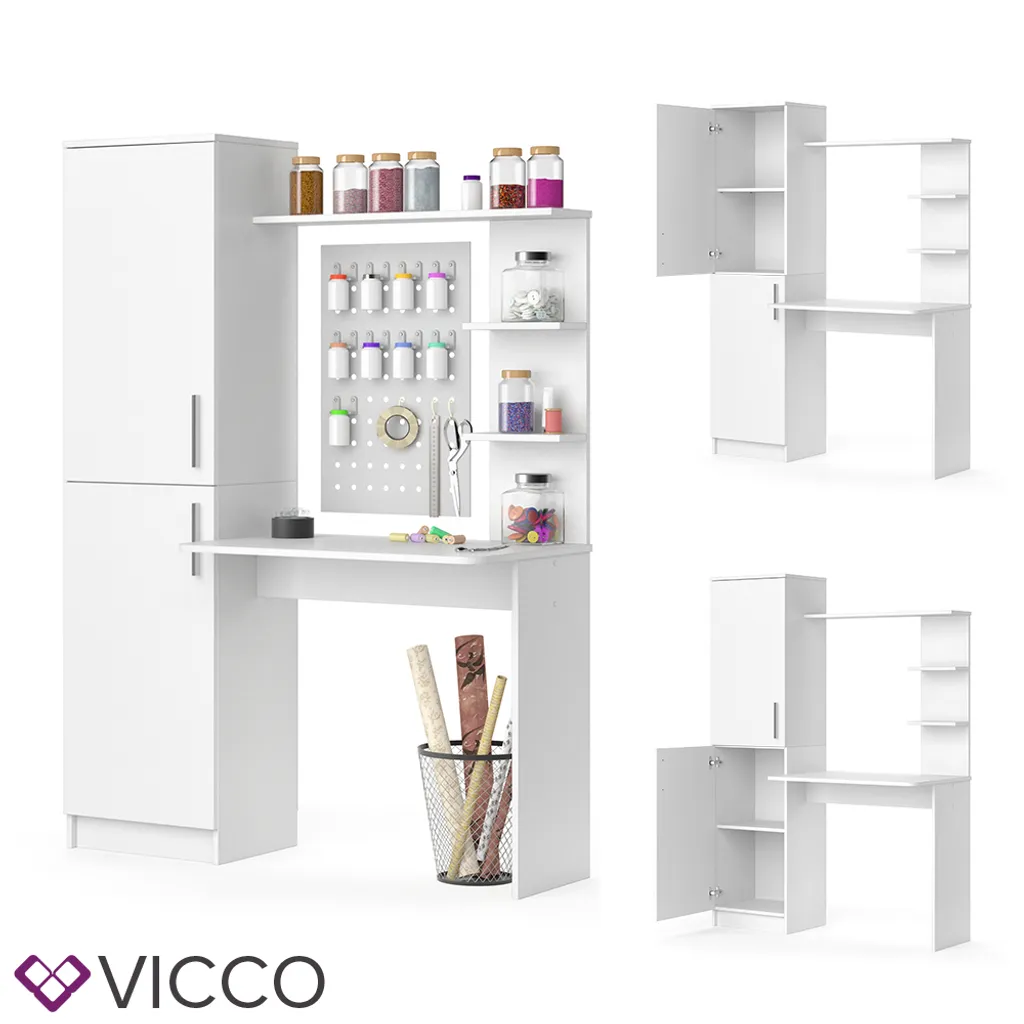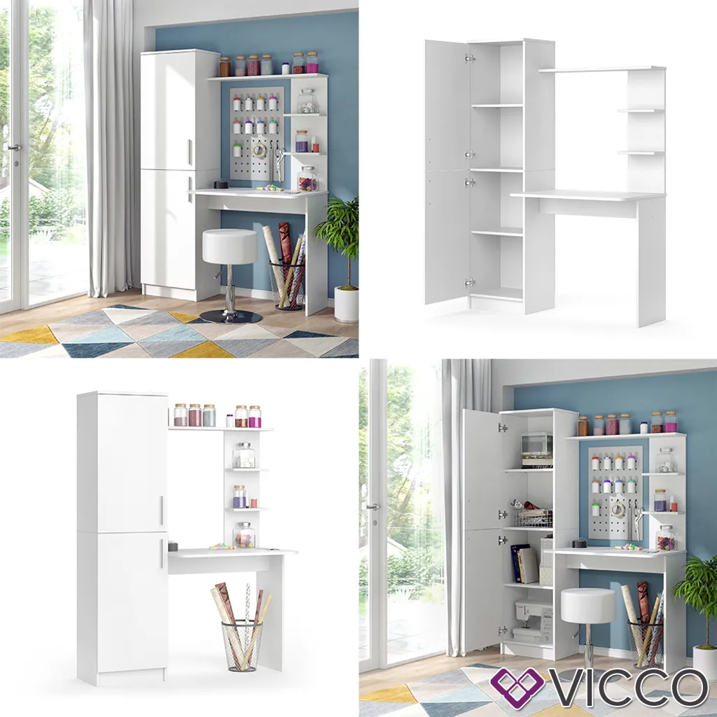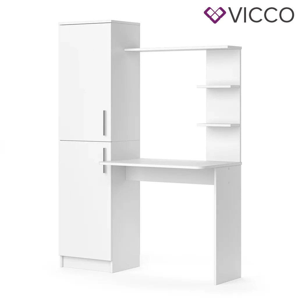 | Zusätzliche Varianten | Vicco Arbeitstisch mit Schrank Tessa Weiß 122,9 x 168 x 52 cm Holzwerkstoff, Vicco Schreibtisch Polo weiß 91 x 77 x 59 cm Holzwerkstoff |