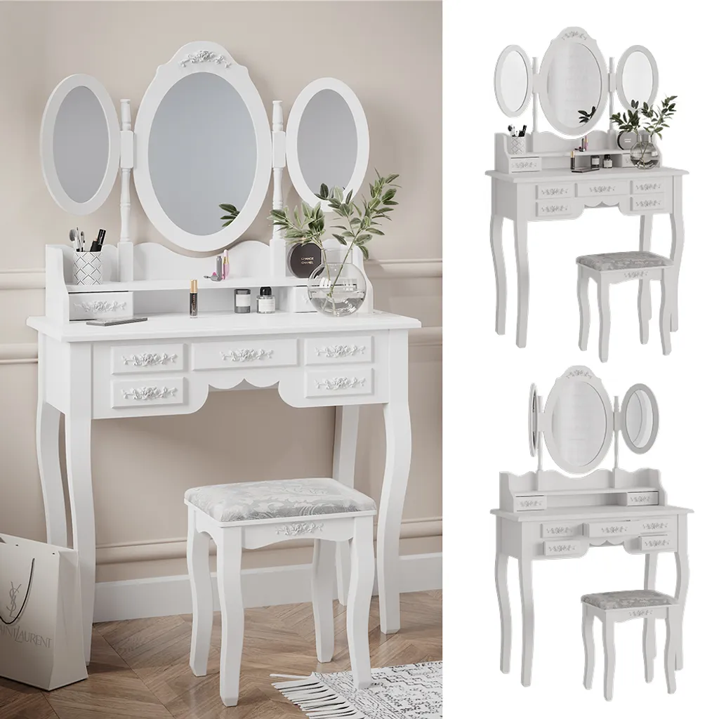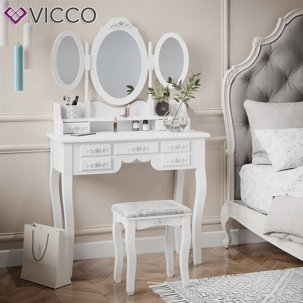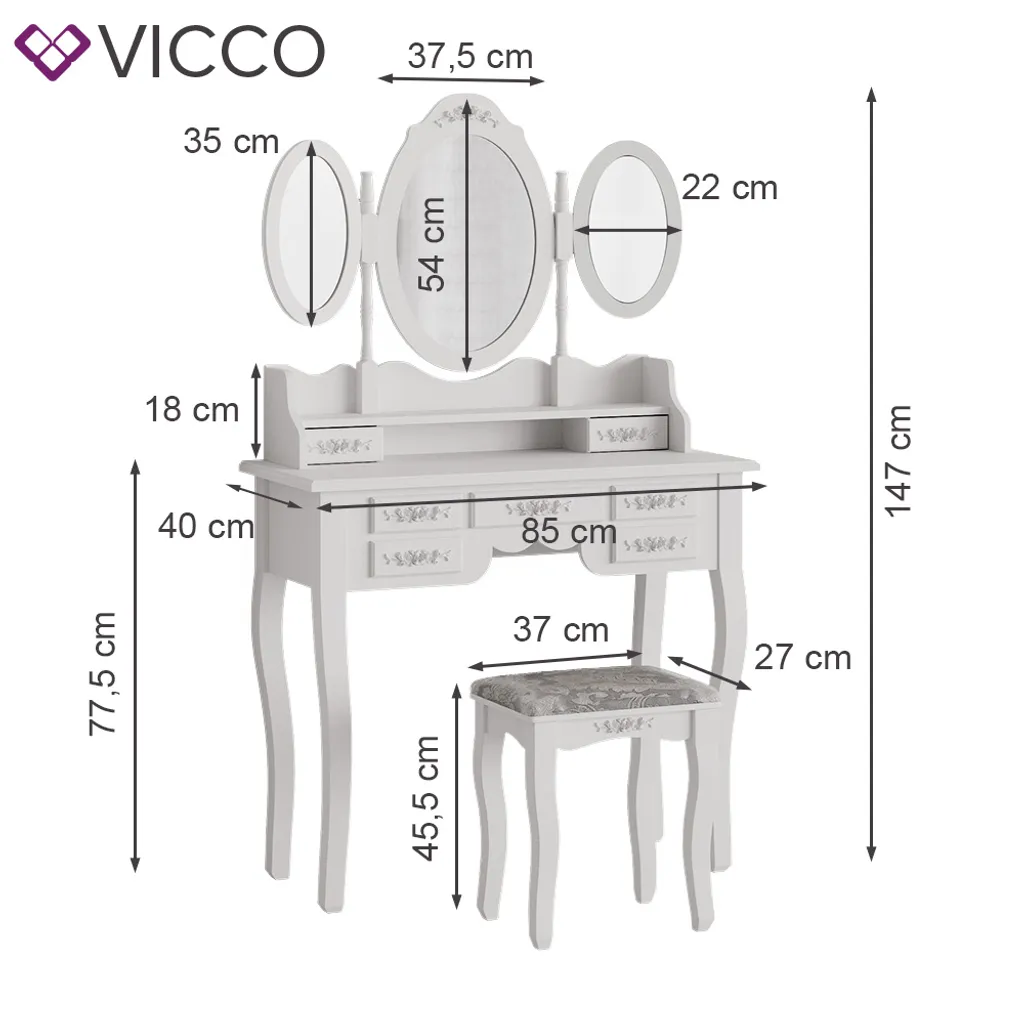 Vicco Schminktisch Diana + Hocker Weiß 85 X 147 X 40 Cm Holzwerkstoff