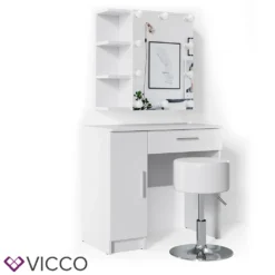 | Zusätzliche Varianten | Vicco Schminktisch Frisiertisch Frisierkommode Lotos Weiß LED Spiegel Hocker, Vicco Schminktisch Frisiertisch Frisierkommode Lotos Weiß mit LED Beleuchtung |