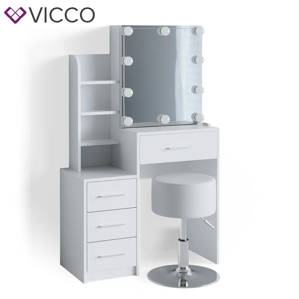 | Zusätzliche Varianten | Vicco Schminktisch Frisiertisch Schminkkommode Conrada + LED-Beleuchtung Kommode, Vicco Schminktisch Frisiertisch Schminkkommode Conrada LED-Beleuchtung + Hocker |