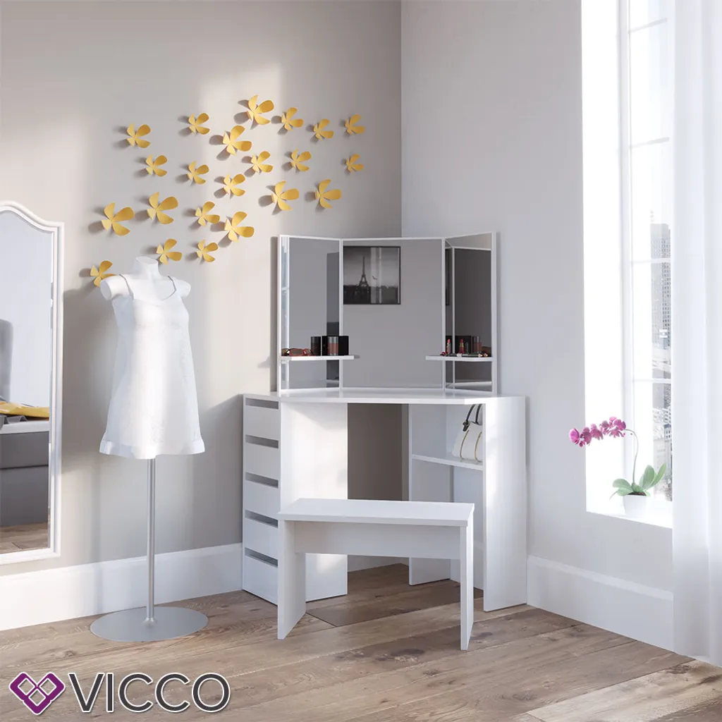 Vicco Schminktisch HOCKER Bank Cm Weiß – Frisiertisch Kommode Spiegel