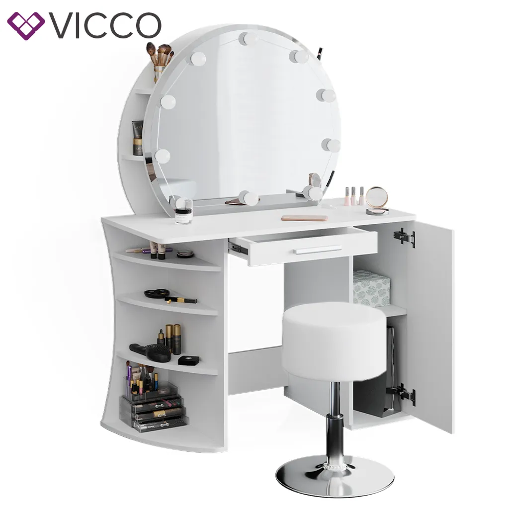 Vicco Schminktisch + Hocker + LED Almina Weiß 100 X 143 X 50 Cm Holzwerkstoff