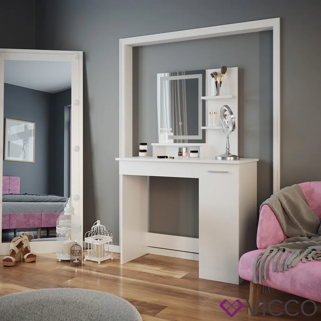 Vicco Schminktisch + LED Spiegel Julia Weiß 90 X 137,5 X 38 Cm Holzwerkstoff