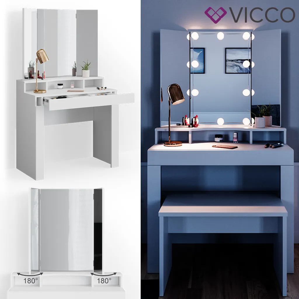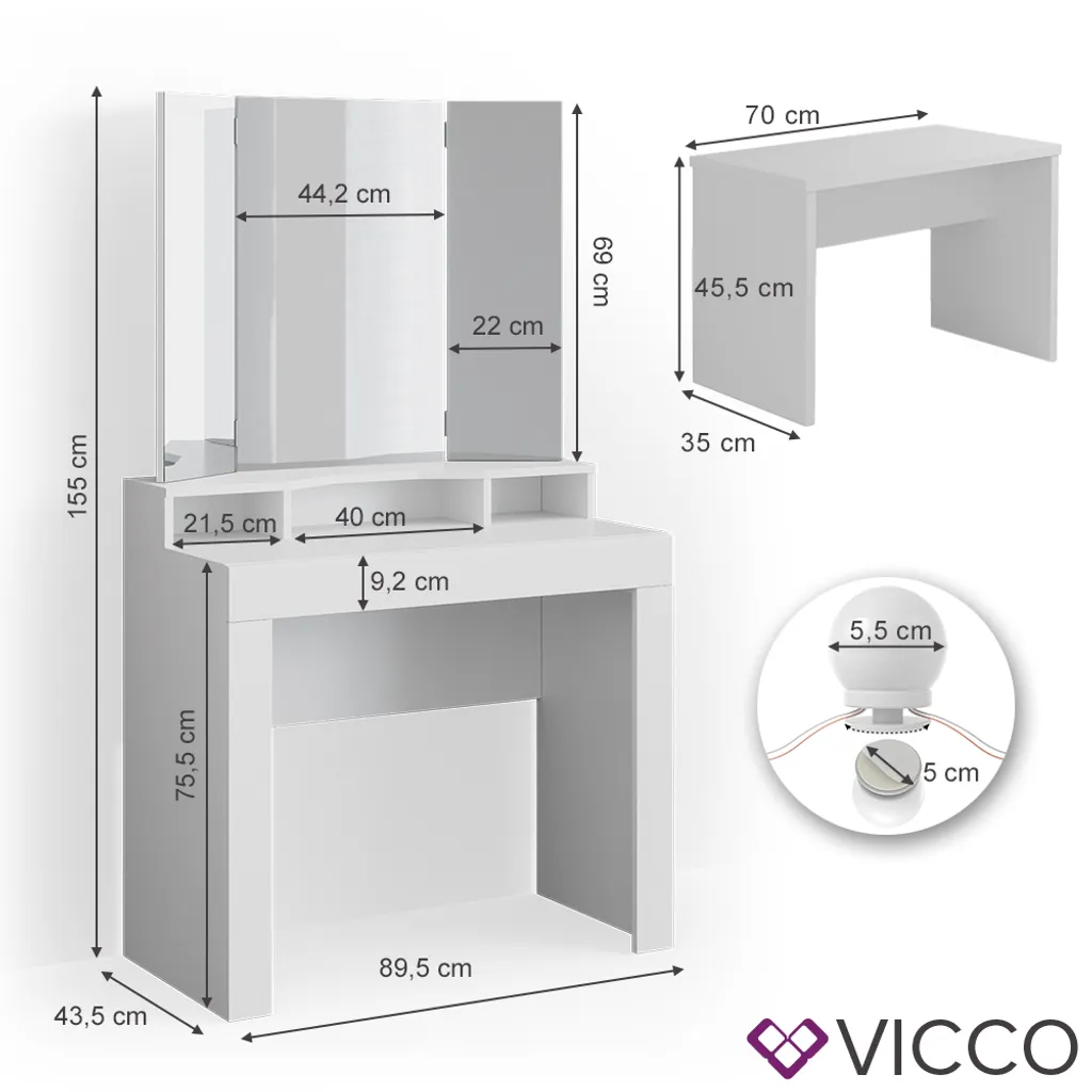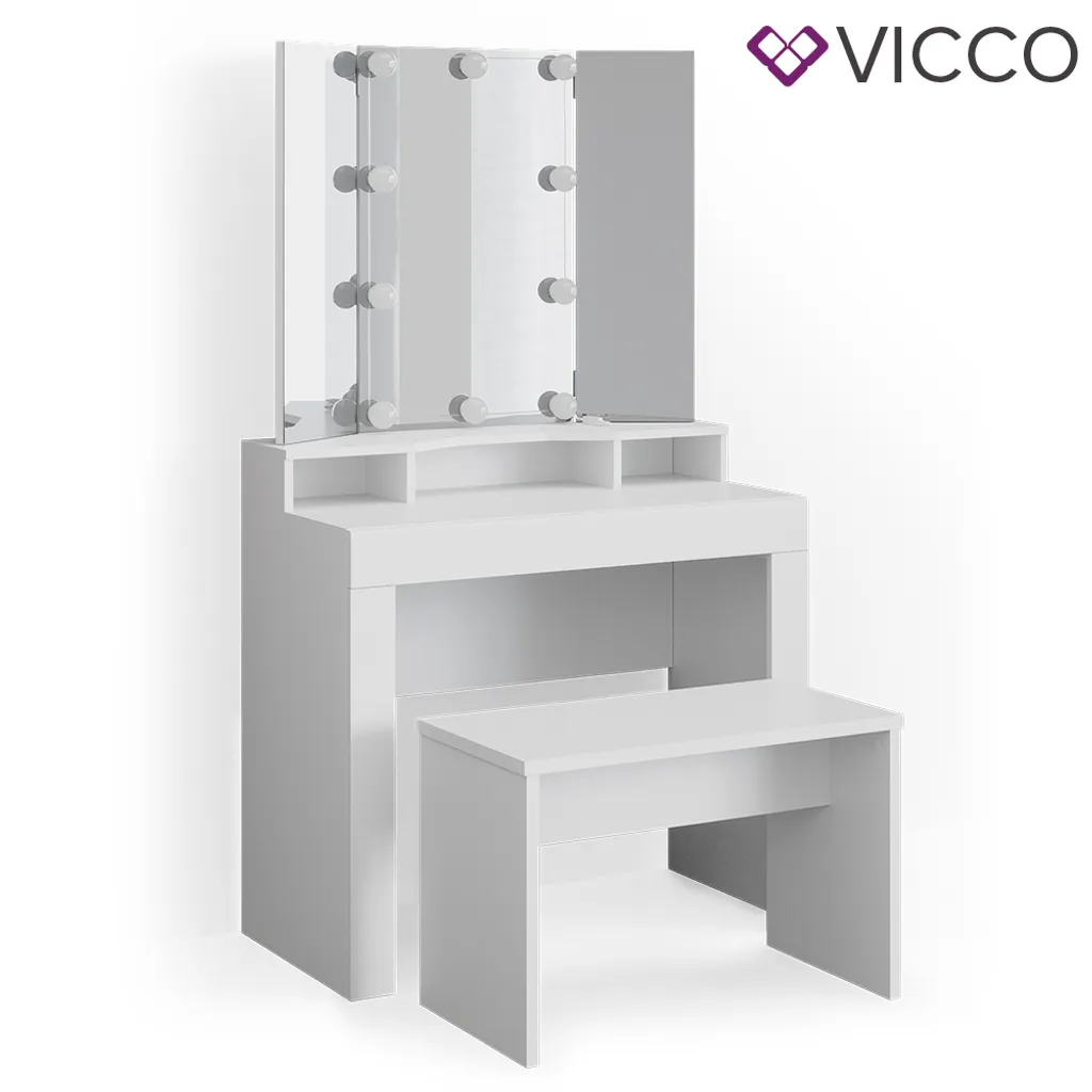 Vicco Schminktisch Nora Weiß Mit LED-Beleuchtung Spiegel Sitzbank Frisiertisch