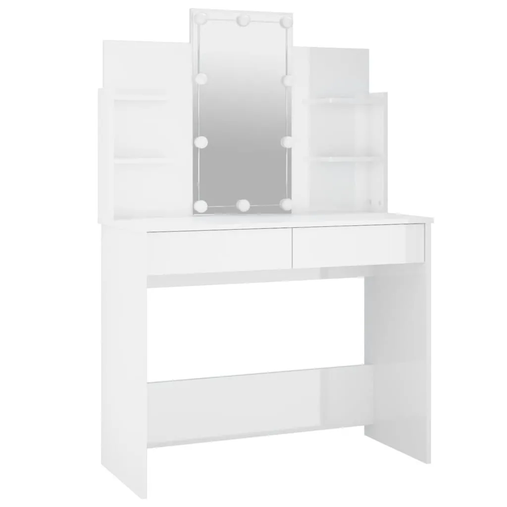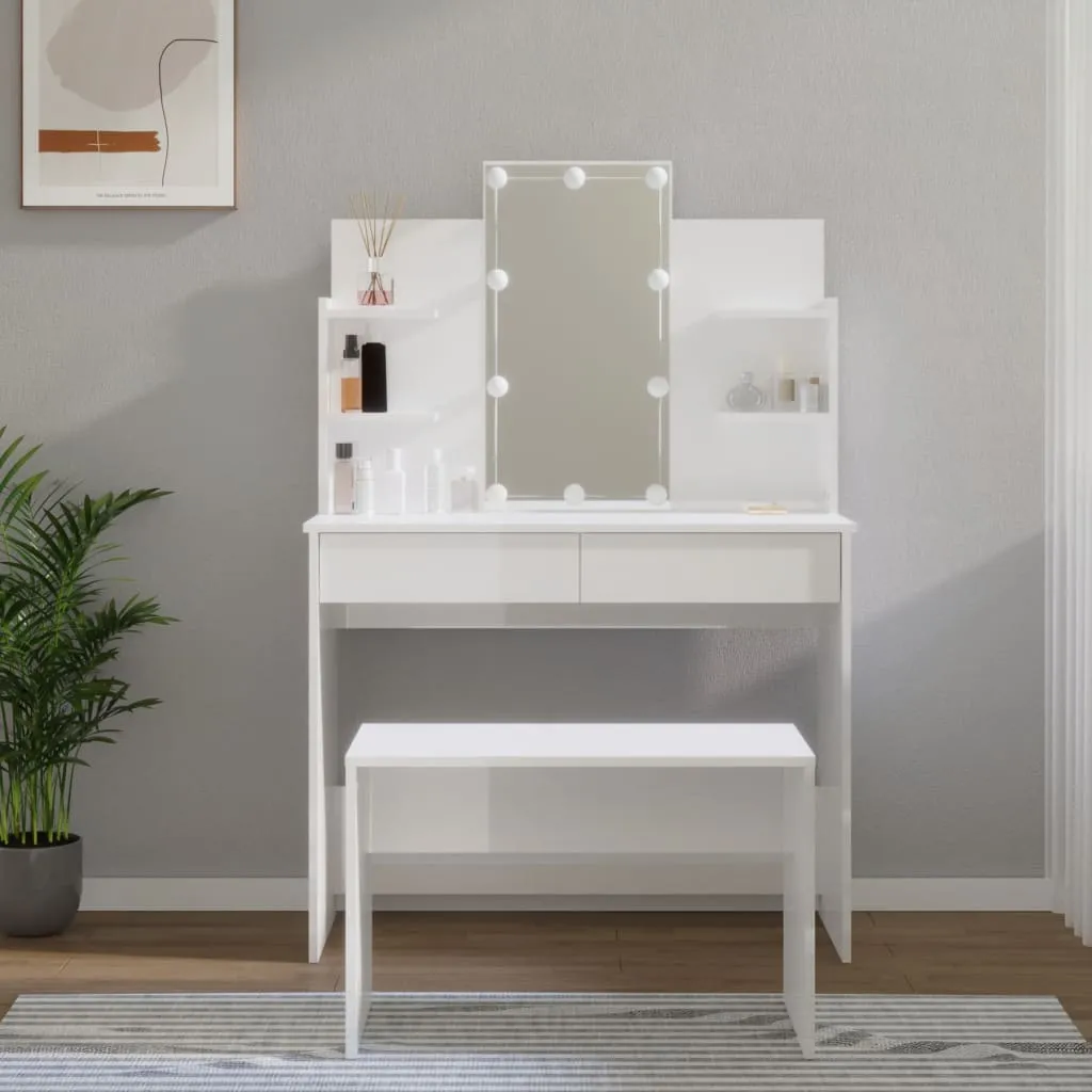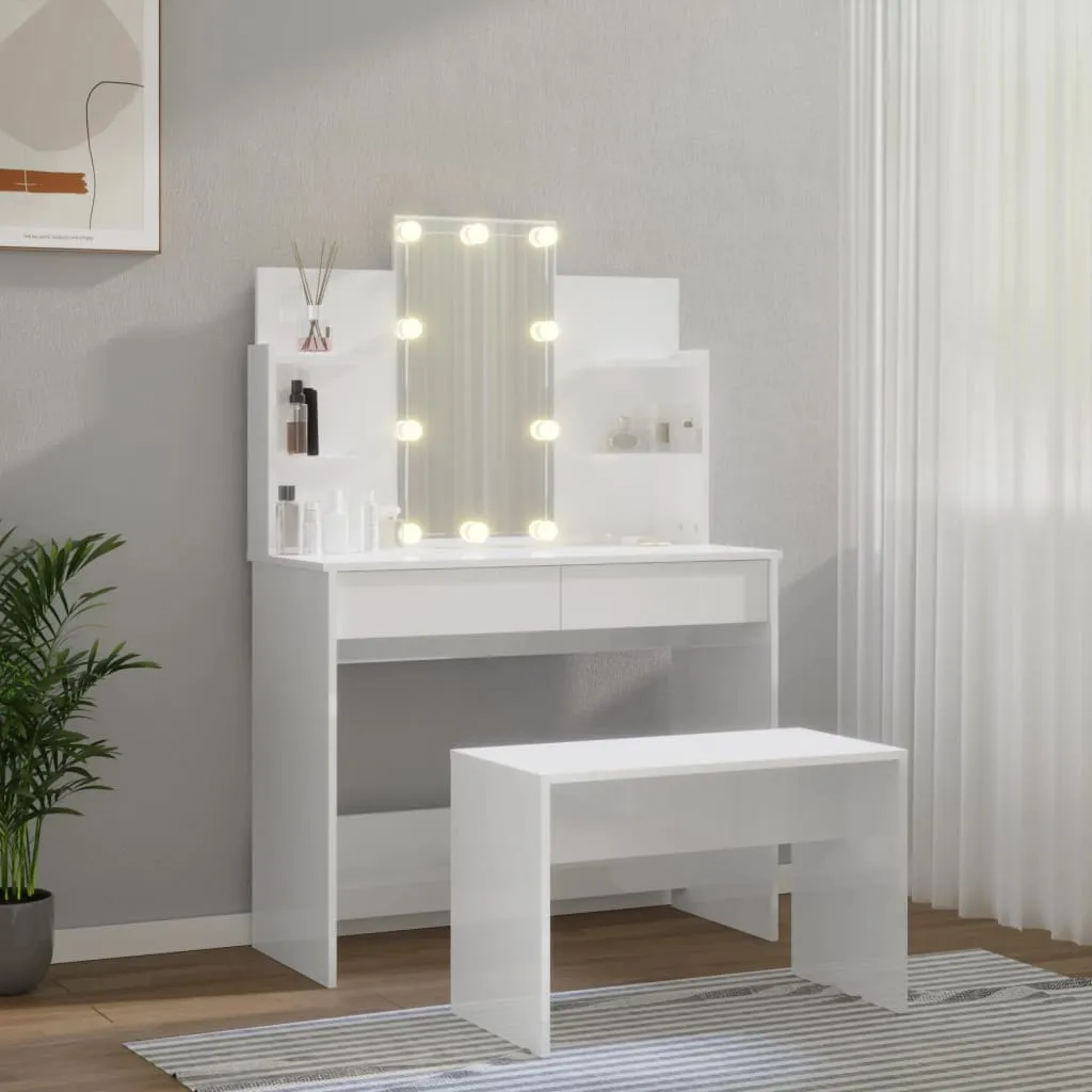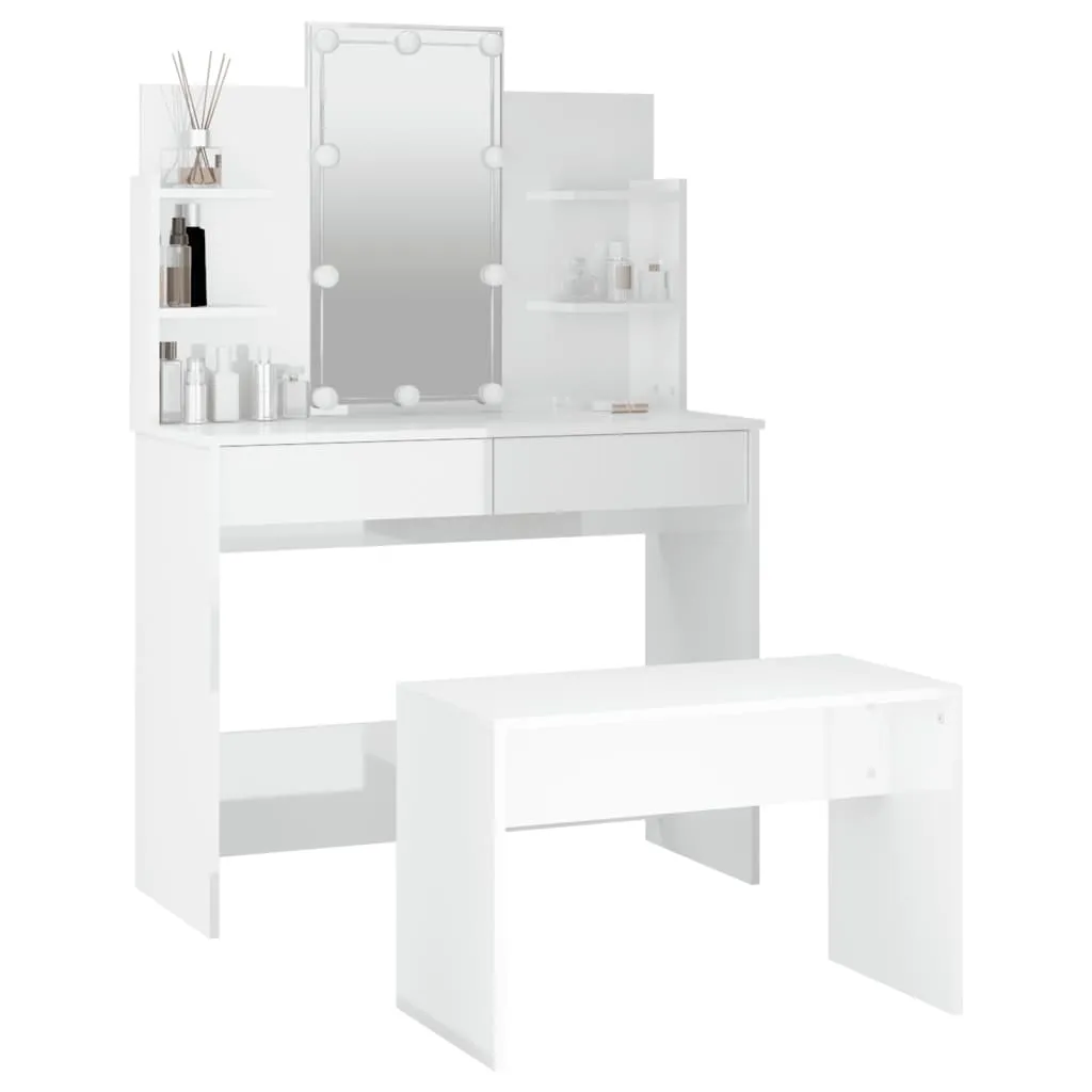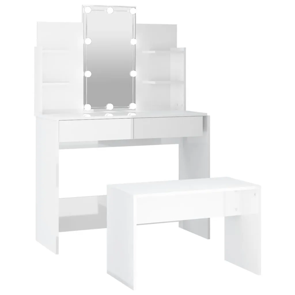VidaXL Schminktisch-Set Mit LED Hochglanz-Weiß Holzwerkstoff
