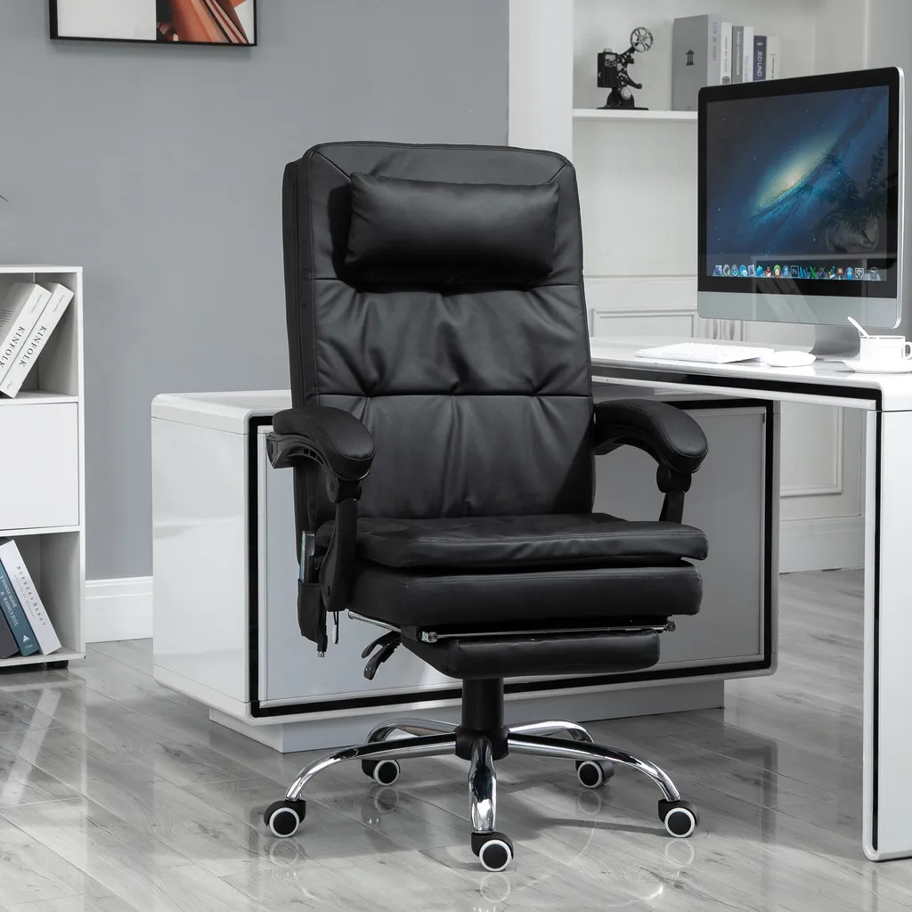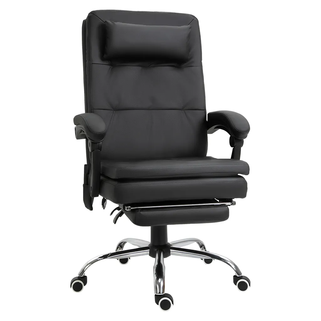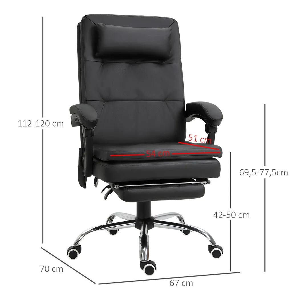 Vinsetto Massagesessel Chefsessel Mit Massagefunktion 7 Vibrationsmassagepunkte Höhenverstellbarer Drehstuhl Bürostuhl Mit Fußstütze Kopfstütze Galvanik Schaumstoff PVC Schwarz 67 X 70 X 112-120 Cm