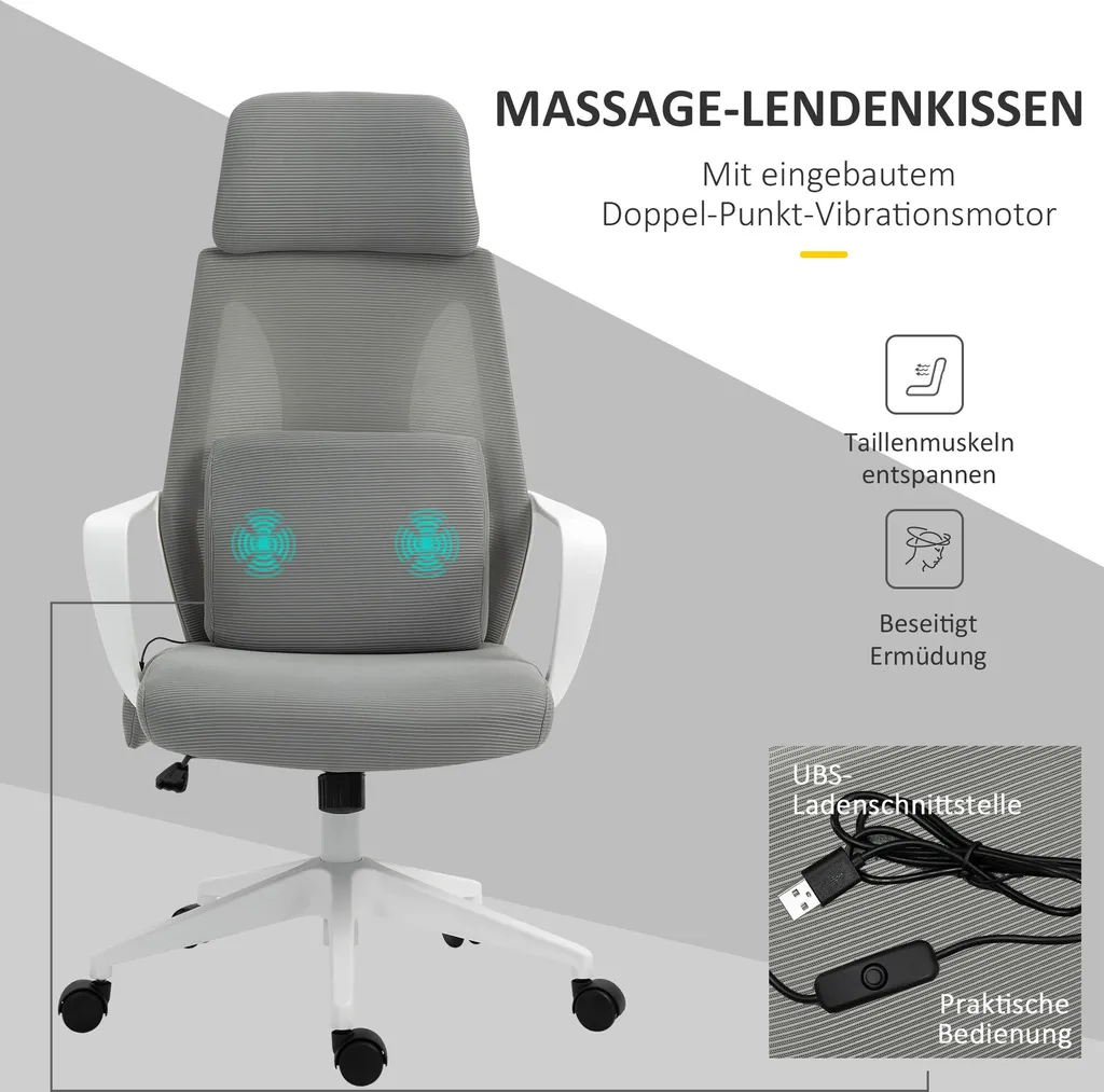 Vinsetto Massagesessel Chefsessel Mit Massagefunktion Höhenverstellbarer Drehstuhl Ergonomischer Gamingstuhl Bürostuhl Massage Nylon Grau 62 X 60 X 114-122 Cm