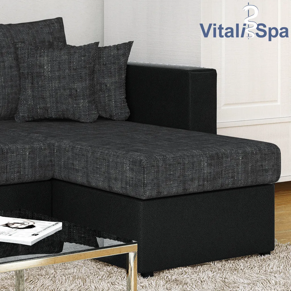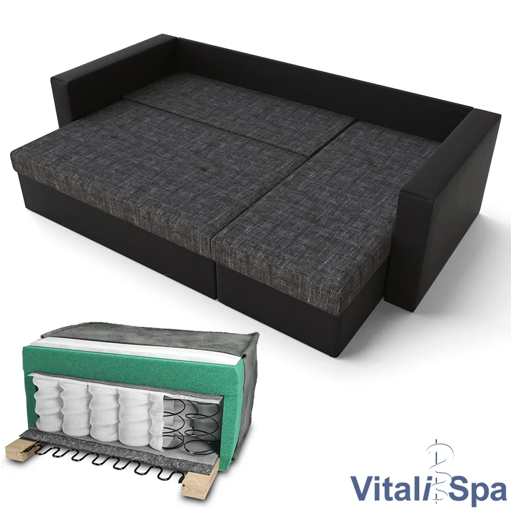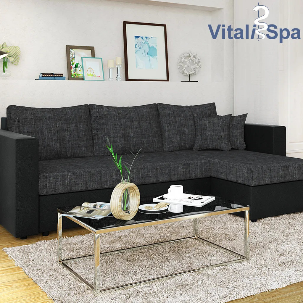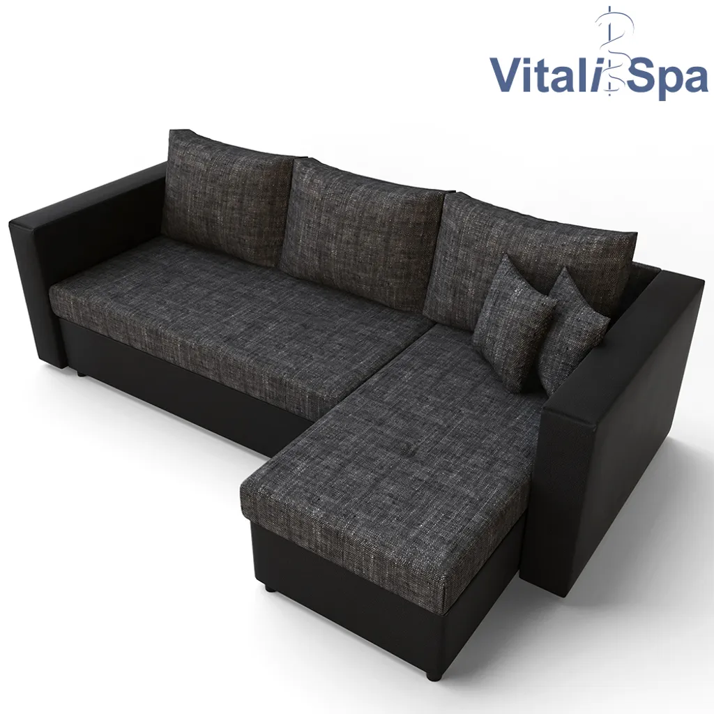 VitaliSpa Ecksofa Mit Schlaffunktion Schwarz Grau 24 X 144 X 95 Cm Kunstleder Webstoff