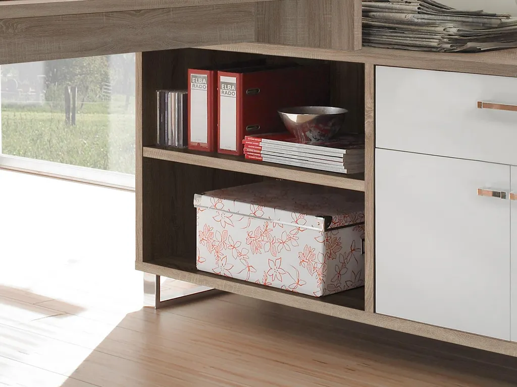 Winkelschreibtisch Schreibtisch Büroschreibtisch Eckschreibtisch „Margate I“ Sonoma-Eiche / Weiß