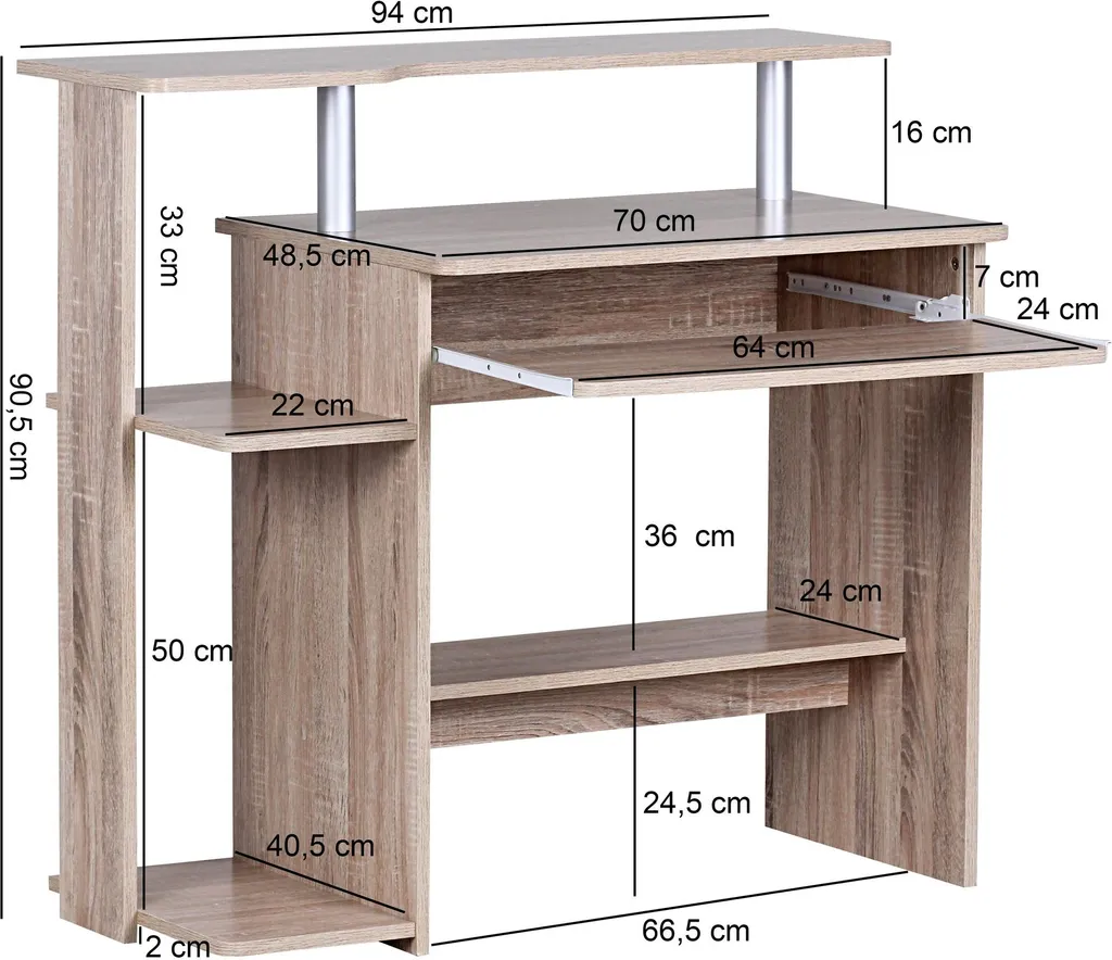 WOHNLING Computertisch WL1.171 Sonoma 94×90,5×48,5 Cm Laptop Tisch Modern Mit Tastaturauszug | PC-Tisch Mit Drucker-Ablage Platzsparend | Schreibtisch Für Kleine Räume Mit Ablage | Laptoptisch Klein
