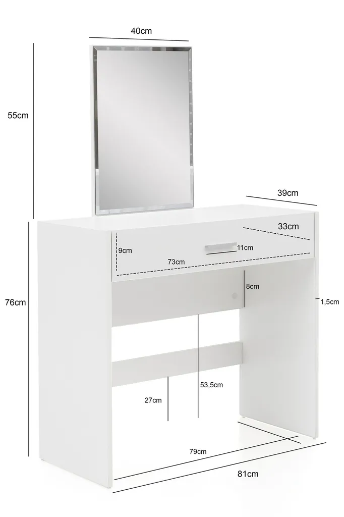 WOHNLING Schminktisch WL5.726 81x131x39 Cm Weiß Konsolentisch Holz Modern | Kosmetiktisch Mit Hocker Und Spiegel | Weißer Frisiertisch Mit Schublade | Moderner Make-Up-Tisch Mädchen Groß