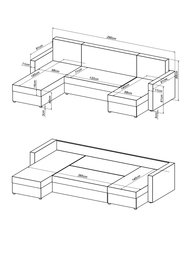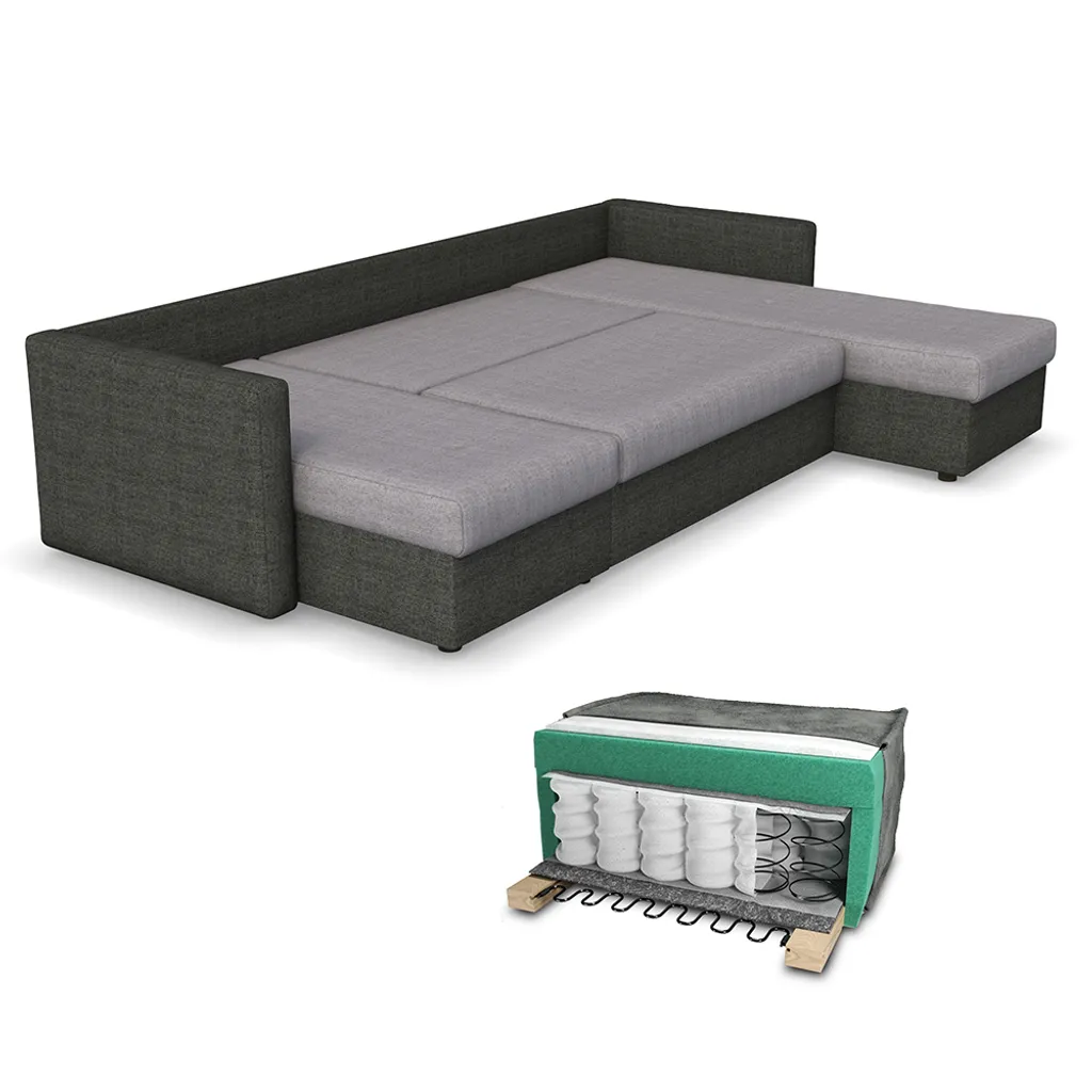 XXL Ecksofa Mit Schlaffunktion 290 X 185 Cm Grau – Wohnlandschaft Schlafsofa Sofa Schlafcouch Taschenfederkern Eckcouch