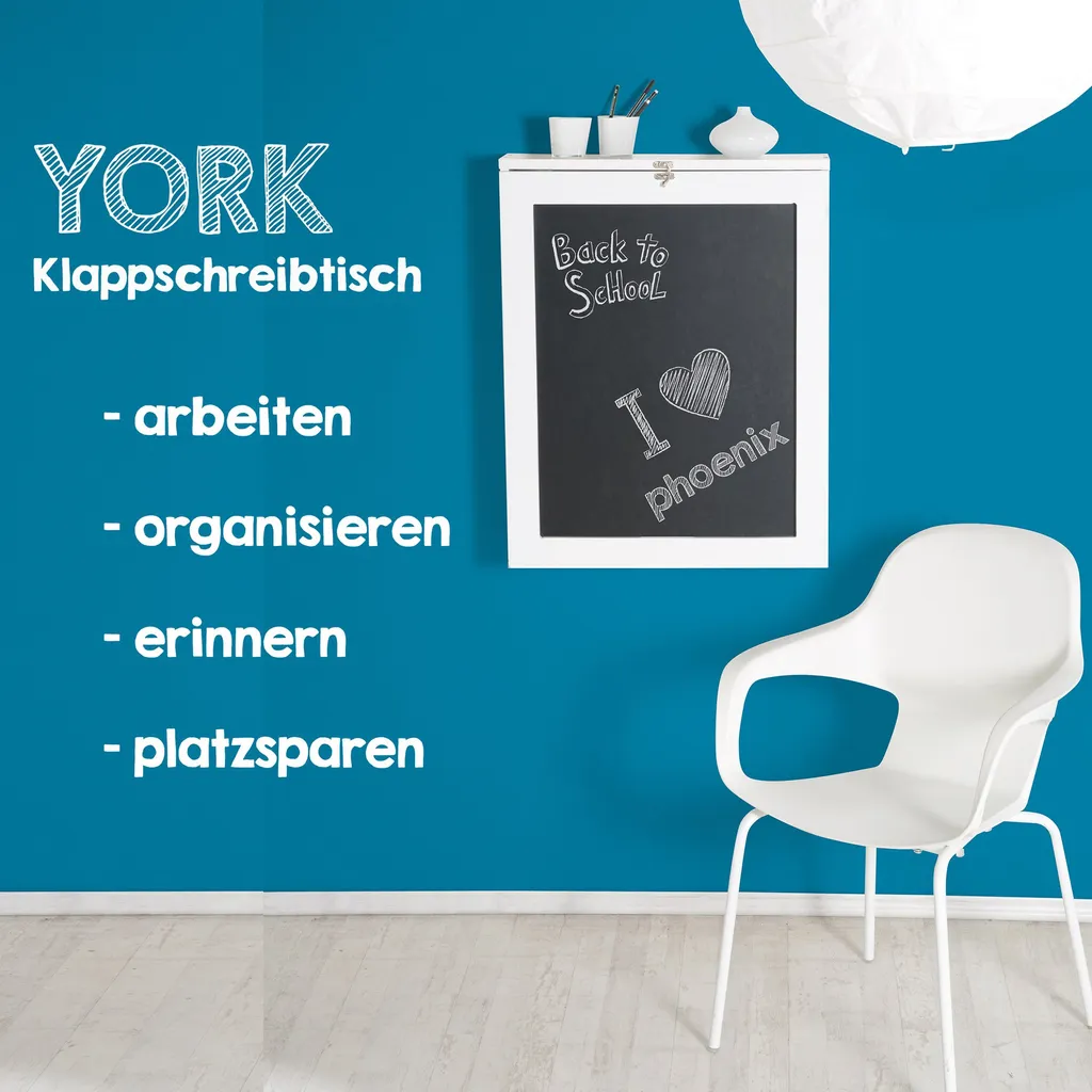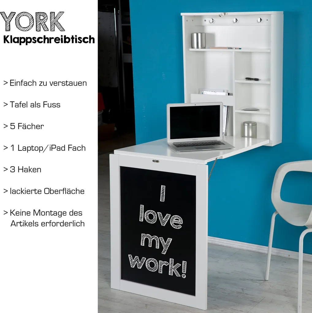 York – Klapptisch, Schreibtisch, Küchentisch, Tresen, Memoboard, Wandregal, Der Kleine Alleskönner Mit Viel Stauarum, We